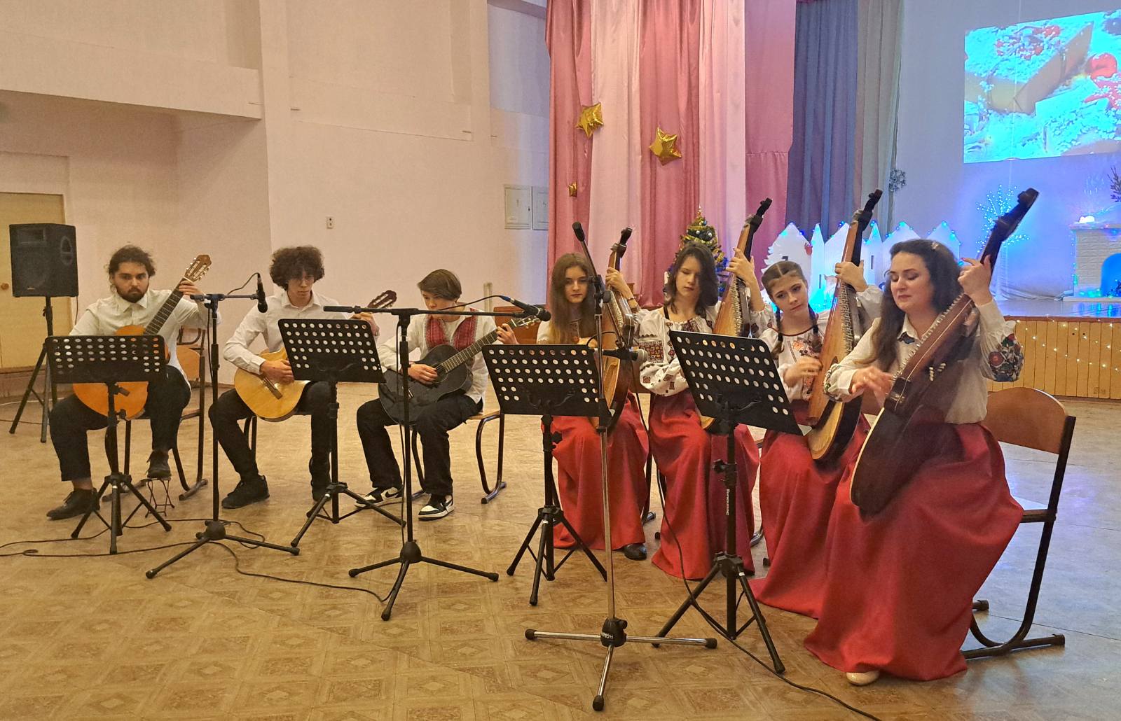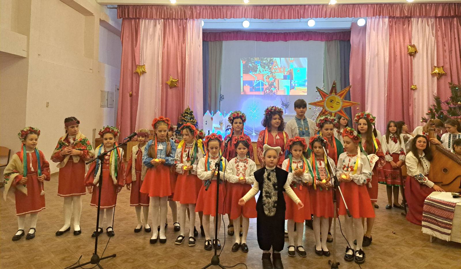 Первым на сцену пригласили хор учеников “Мелоспів“. Их трогательная песня “Коляда по світу йшла” создала теплое и праздничное настроение. Фортепианный ансамбль “Капріччіо” впечатлил зрителей своим виртуозным исполнением, а барабанщики подарили зажигательные мелодии, которые перенесли присутствующих в мир зимних приключений.