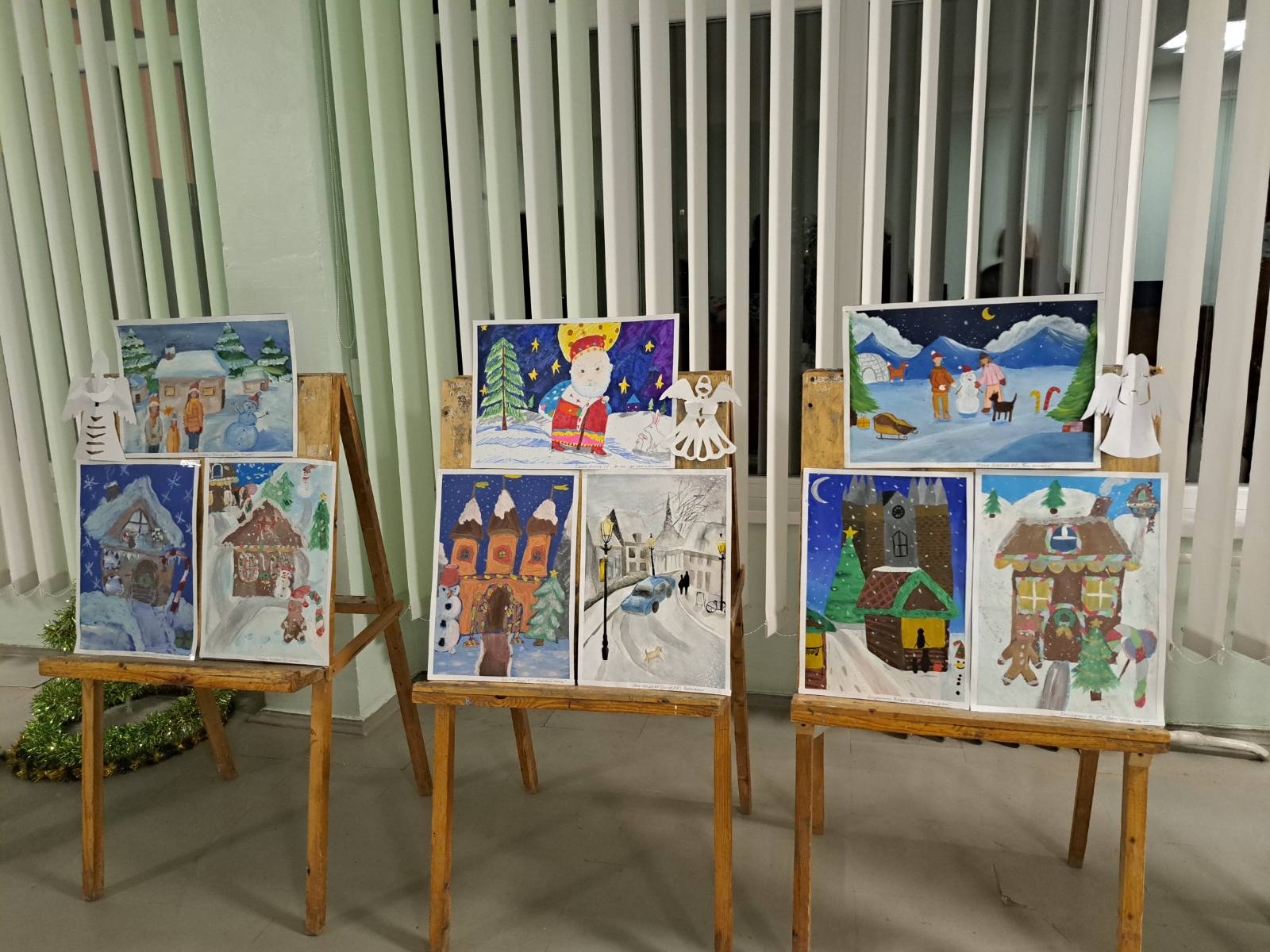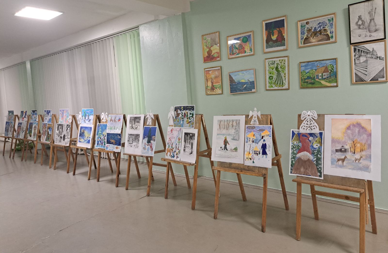 К созданию особой атмосферы также приобщились ученики художественного отделения школы. Дети украсили холл собственными работами. Картины с зимними пейзажами, сказочными героями и яркими новогодними мотивами добавили уюта праздничному мероприятию.