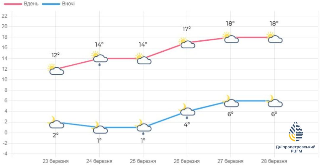 Весна набирает обороты: прогноз погоды на неделю по Днепропетровщине
