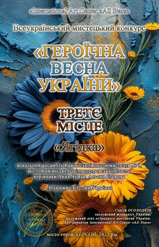 Пусть это достижение станет для юных вокалистов толчком к новым свершениям, творческим победам и вдохновению. Продолжайте своим творчеством прославлять Украину.