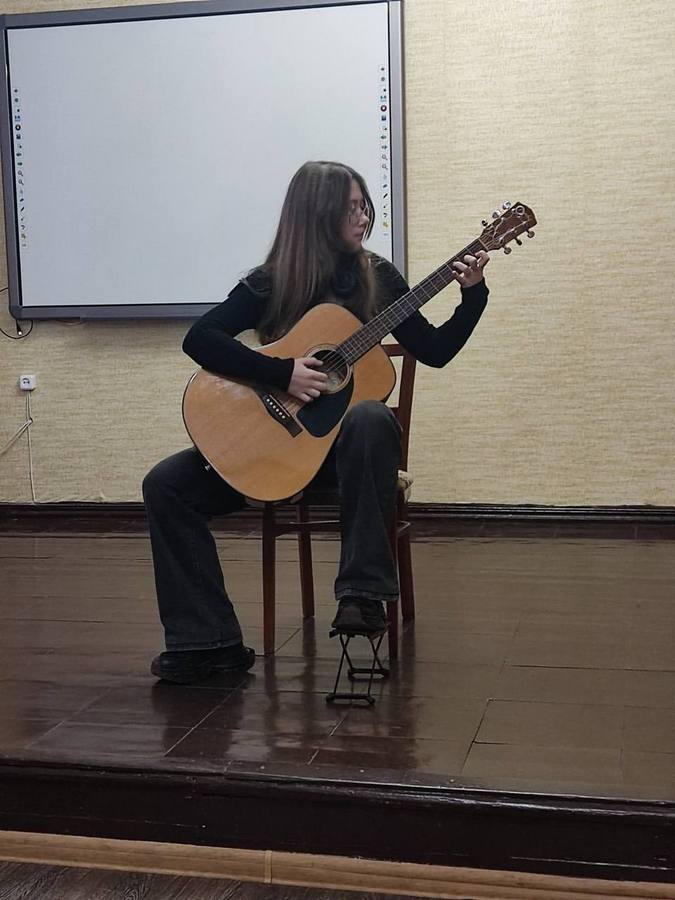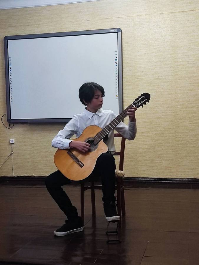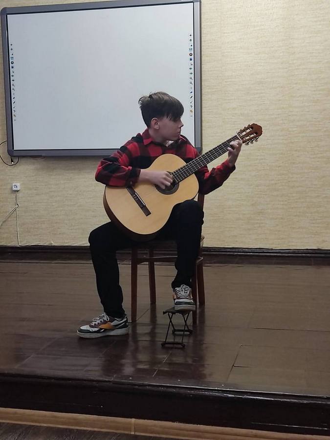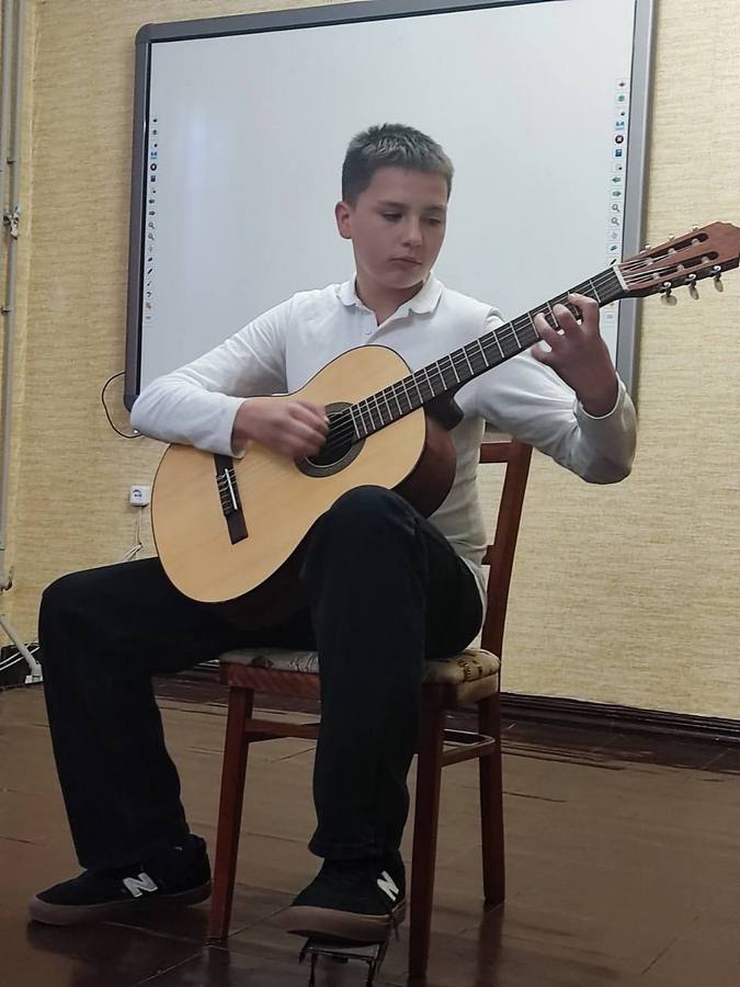 Этот концерт стал дебютным для начинающего гитариста Андриана Денисенко. Он только осваивает инструмент. Занимается всего полтора месяца, но уже сумел сыграть на сцене мелодичную «Польку» Фердинандо Карули. Поздравляем с первым успехом, желаем вдохновения и усердия в учебе.