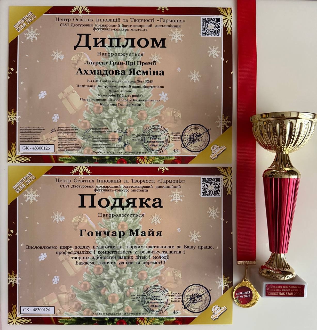 Эта победа не случайна – за блестящим результатом стоят часы упорных репетиций, ежедневный труд и вдохновение. Для Ясмины этот успех стал новым творческим взлетом, подтверждающим ее высокий потенциал. Высшую награду конкурса девушка получила за исполнение композиции “Ніч яка місячна” (Л. Забара).