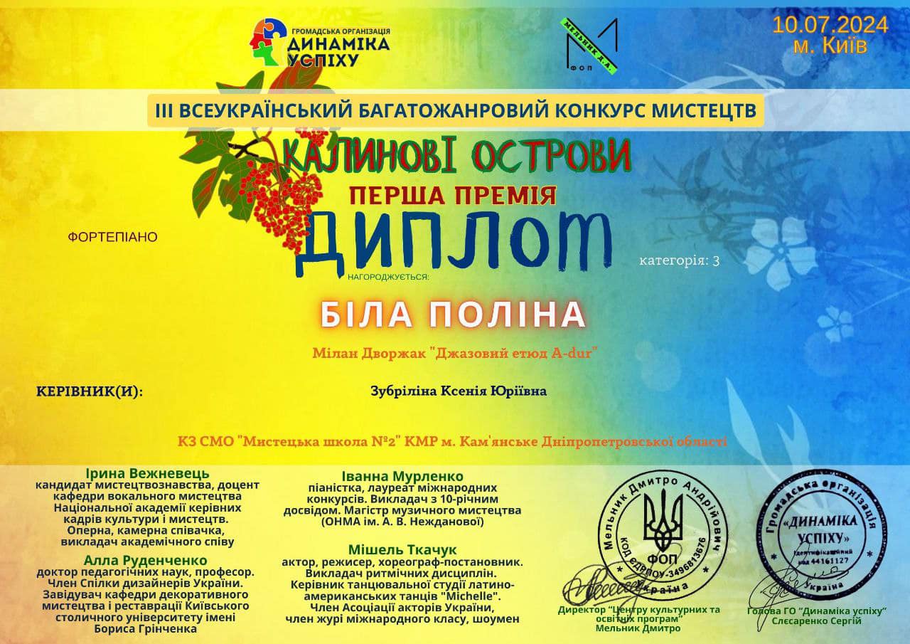 В Киеве 10 июля состоялся ІІІ Всеукраинский многожанровый дистанционный конкурс искусств “Калинові острови”. Его проводила общественная организация “Динамика успеха”. Участники представили свое мастерство в вокале, музыке, хореографии и других направлениях.