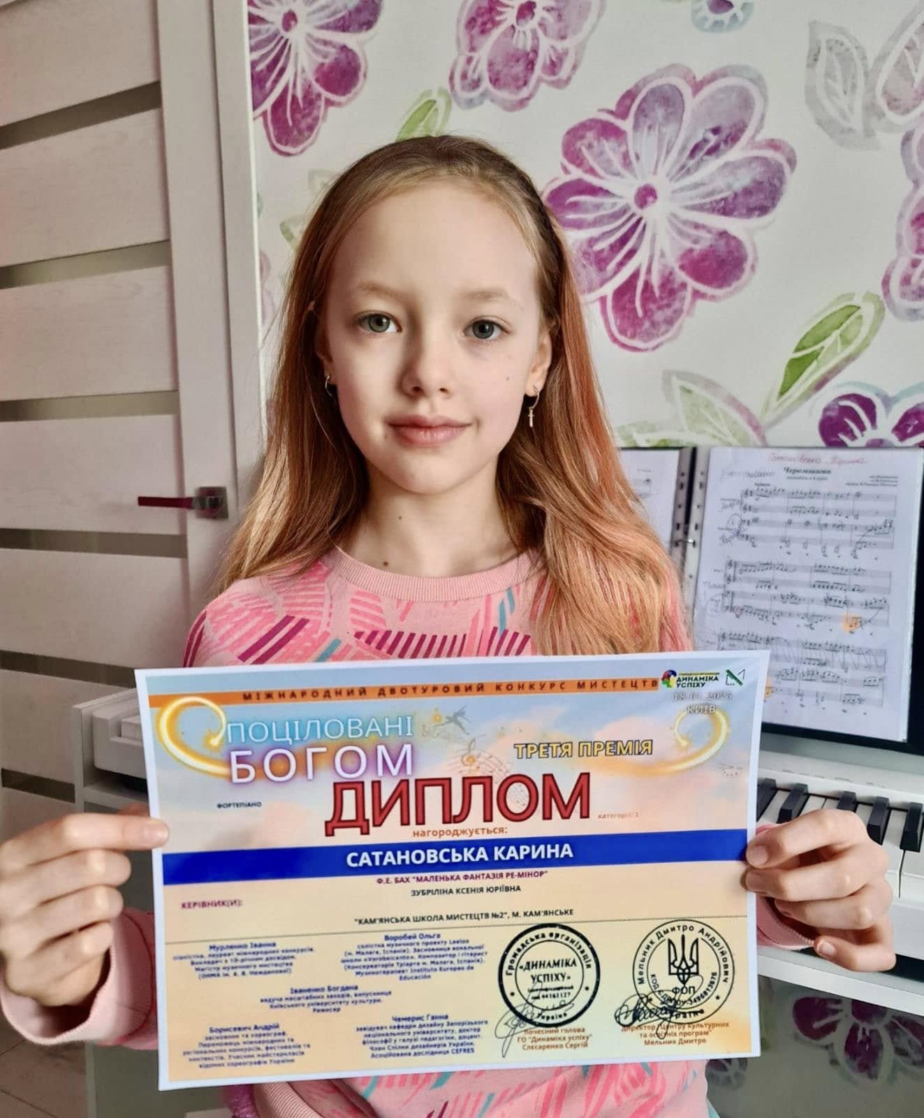Выступления юных пианисток высоко оценили на Международном двухтуровом конкурсе искусств “Поціловані Богом” (Киев) от общественной организации “Динаміка успіху”. Девочки исполнили полифонические произведения, заняв призовые места: