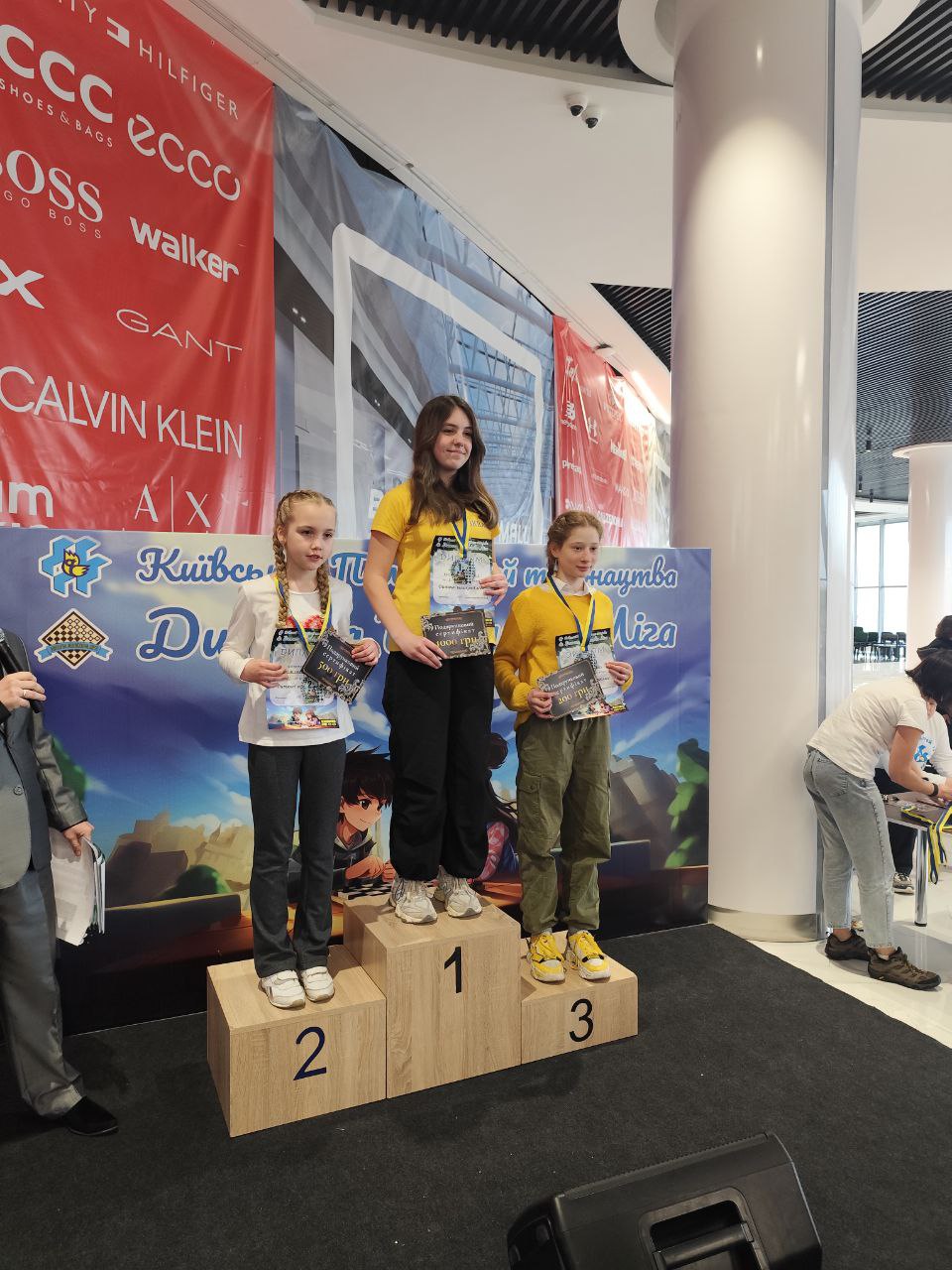 На пьедестал почета также поднимались за серебряной наградой – Олег Подгорный-Пицик (тренирует Алена Губарева), за бронзовыми – Зоряна Савинская (тр. Д. Савинский) и Мария Плющакова (тренер Ольга Губарева, ДЮСШ № 1). Соревнуясь в семи возрастных группах из восьми, всего каменские шашисты сумели завоевать 7 медалей (4 золотых, 1 серебряную, 2 бронзовых).