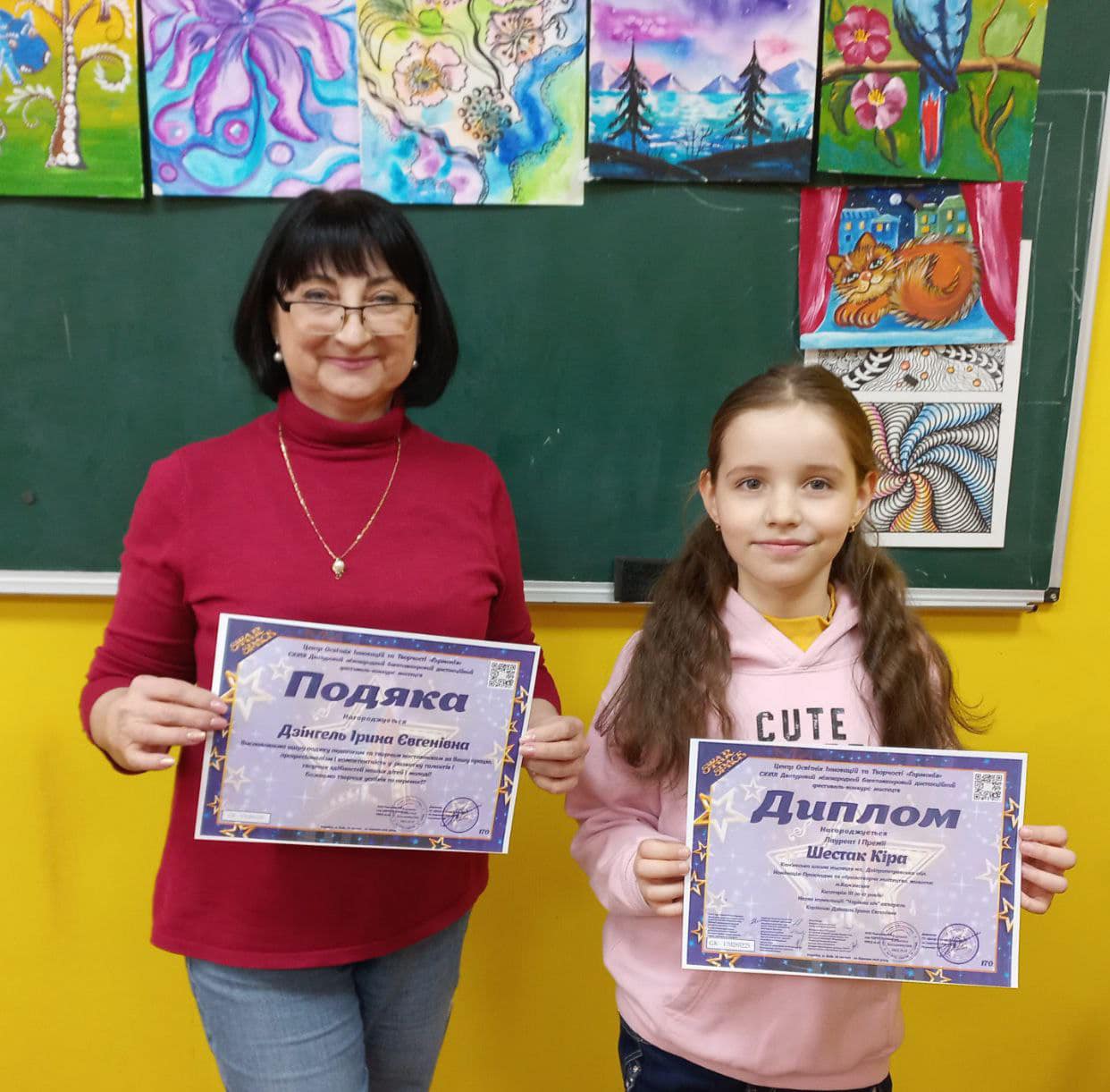 Ученица отделения изобразительного искусства Кира Шестак стала лауреатом Международного многожанрового фестиваля-конкурса искусств Star Space. Состоялся 28 февраля в столице Украины. Организатором выступил Центр образовательных инноваций и творчества “Гармонія”.
