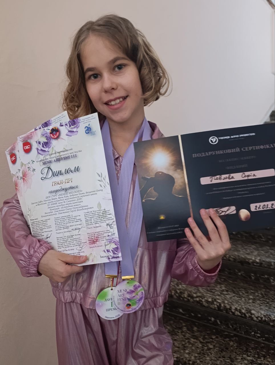 Отдельным приятным бонусом для Софии стал сертификат на запись кавер-композиции в профессиональной студии Dnipro Art College при поддержке музыкального лейбла Toichkin Music Production. Это открывает новые возможности для творческого развития.