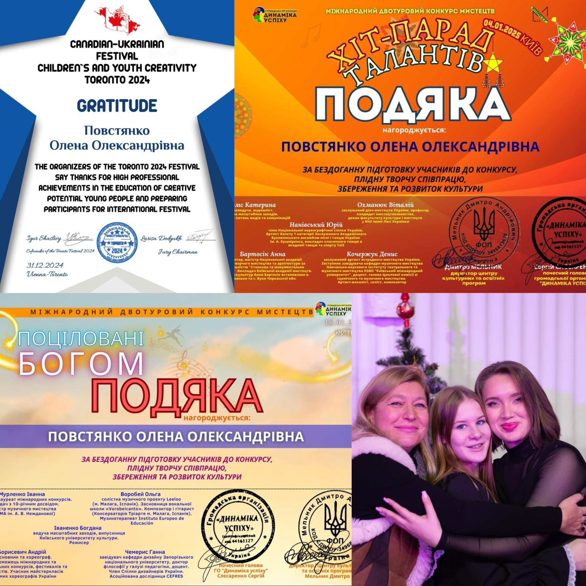 Руководитель студии Елена Александровна Повстянко была отмечена благодарностью за безупречную подготовку участников, творческий вклад и сохранение культуры.