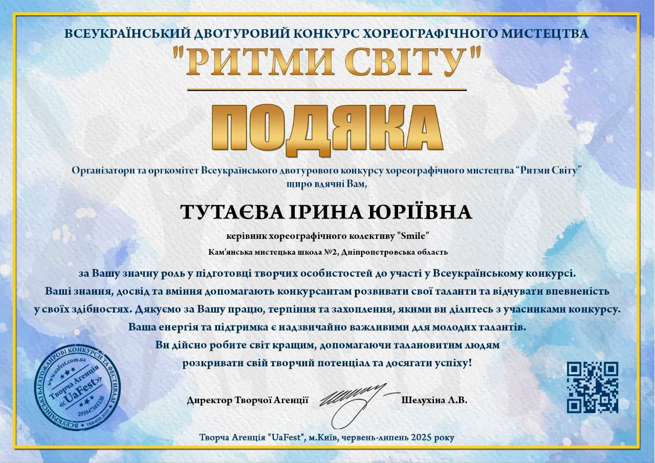 - Хореографический коллектив SMILE (ученики IV класса элементарного подуровня) – диплом лауреата II степени (преподаватель Ирина Тутаева).