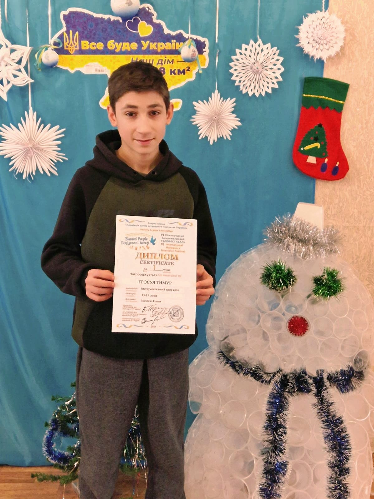 Тимур Гросул представил Каменскую школу искусств № 2 и был отмечен дипломом за первое место в номинации “Инструментальный жанр. Соло”.