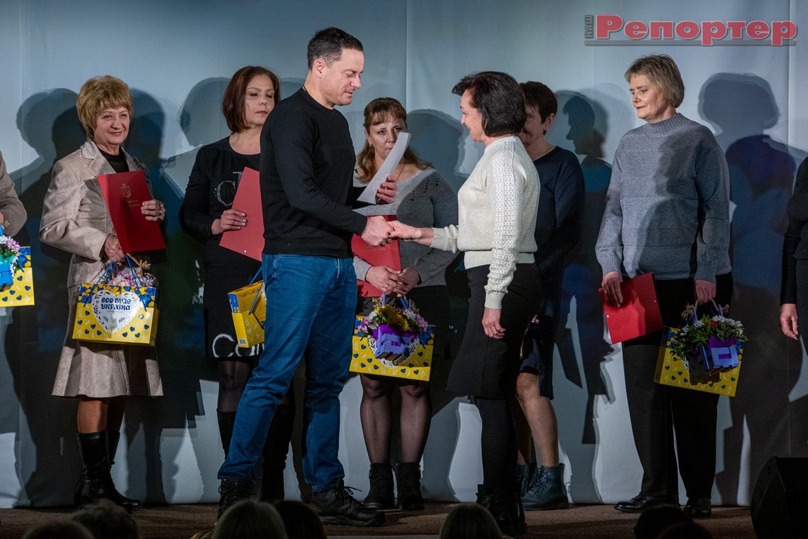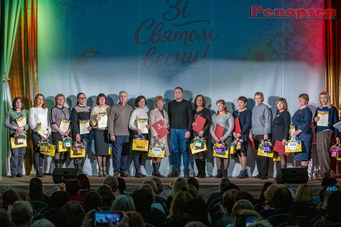 На Малой сцене театра имени Леси Украинки в Каменском 4 марта провели торжество к Международному женскому дню. Поздравления принимали представительницы сферы образования.