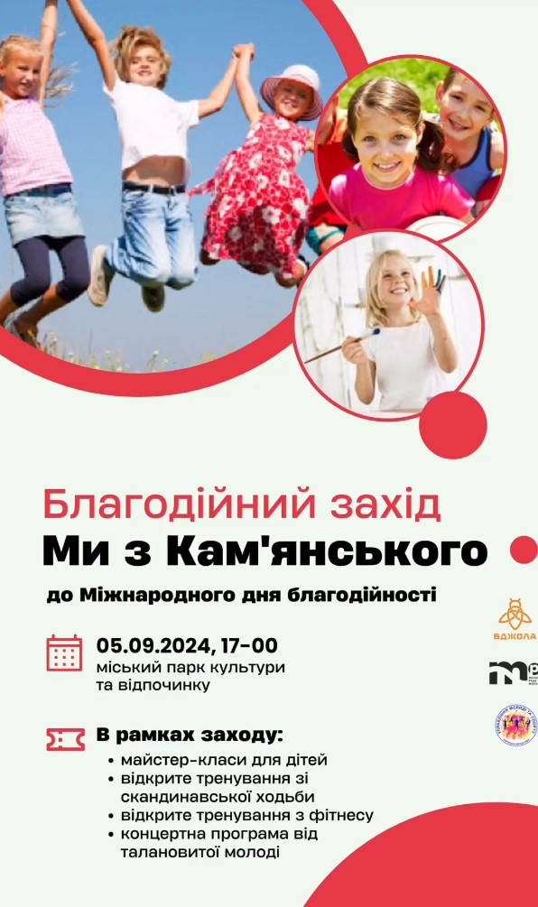 В Каменском 5 сентября отметят Международный день благотворительности. По этому случаю в Центральном парке проведут благотворительное мероприятие “Ми з Камʼянського.