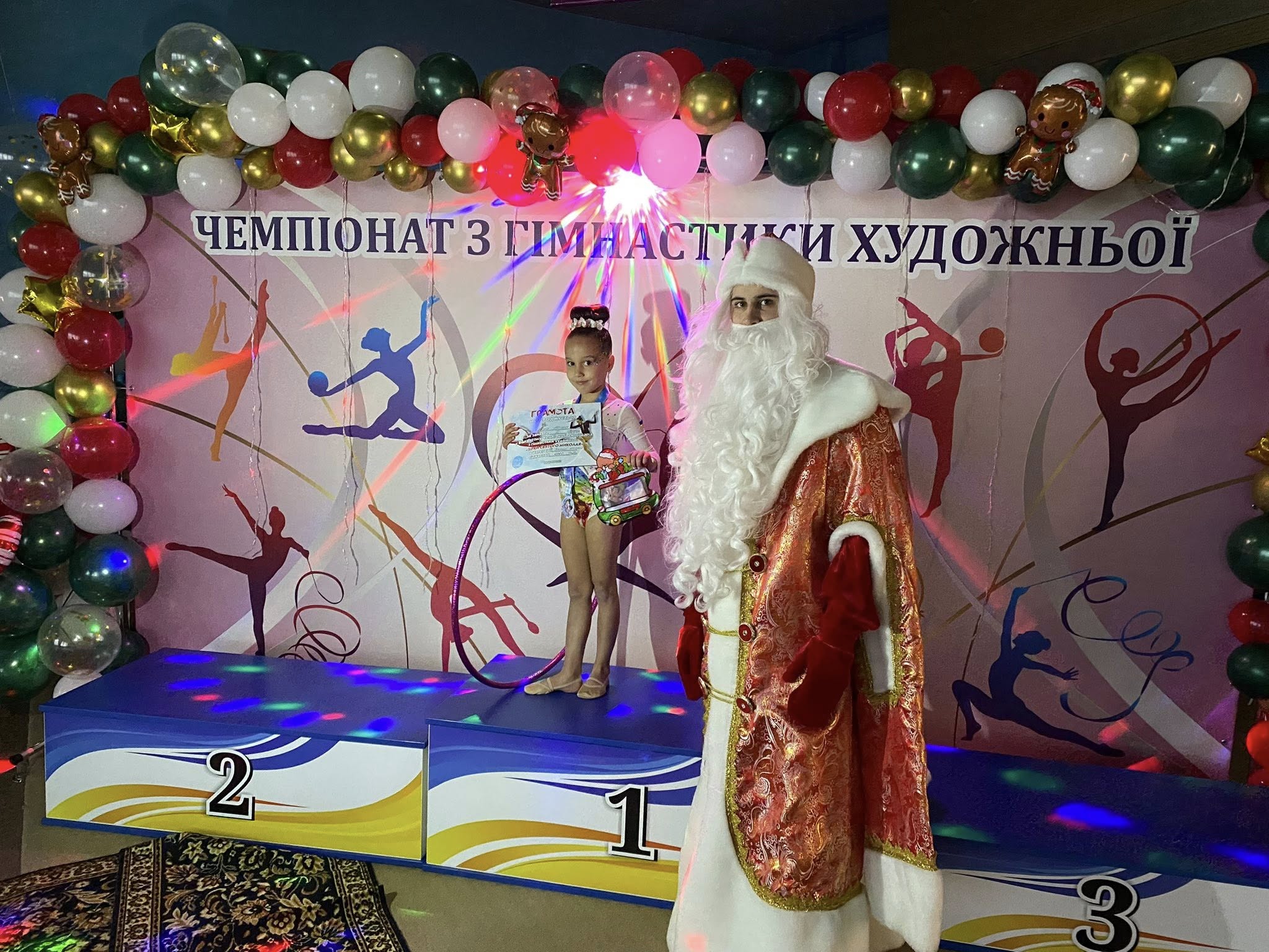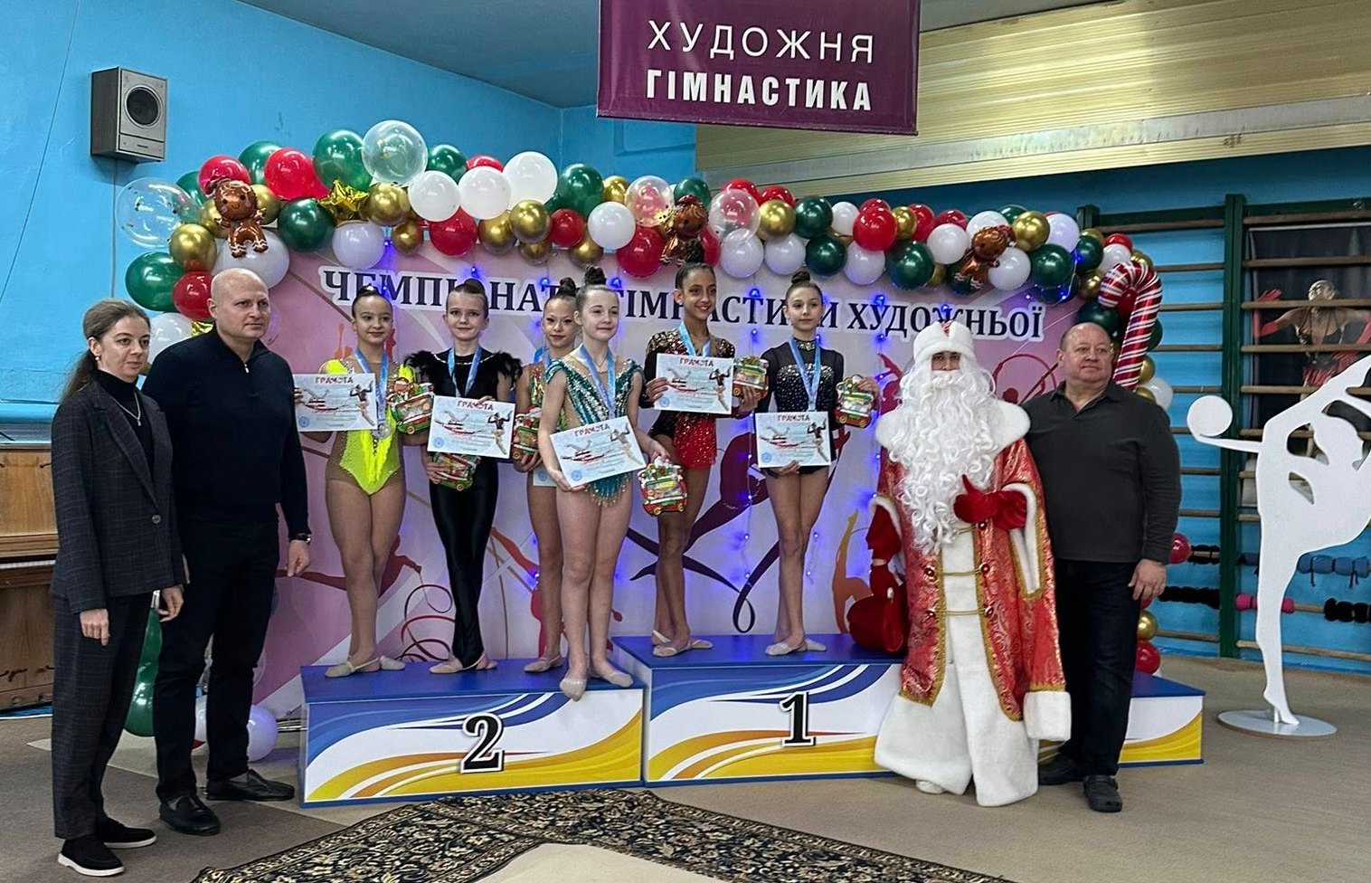 Кульминацией праздничной атмосферы стал визит Святого Николая. Он посетил чемпионат, чтобы лично поздравить участниц и поддержать спортивные традиции. Гимнастки, судьи и почетные гости получили от него подарки, что придало соревнованиям особую теплоту и очарование.