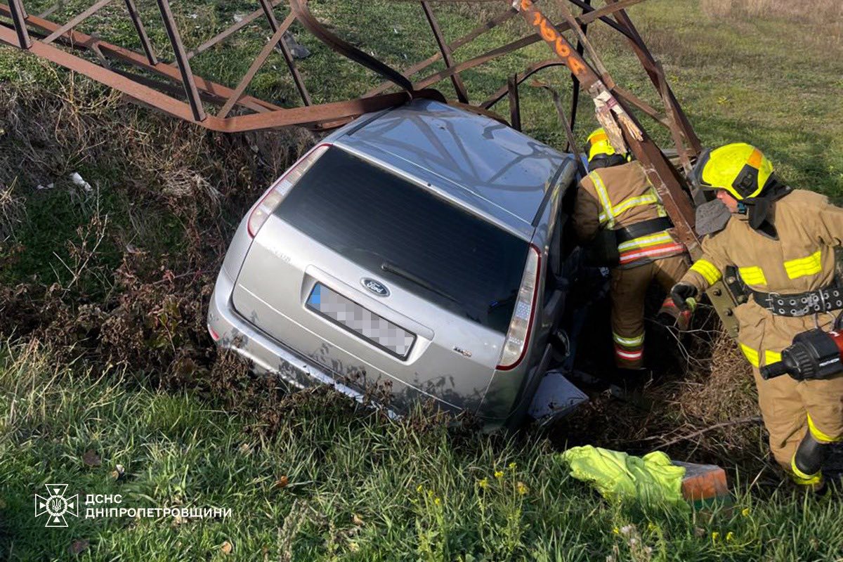 ДТП на Днепропетровщине: автомобиль столкнулся с электроопорой, пострадал водитель