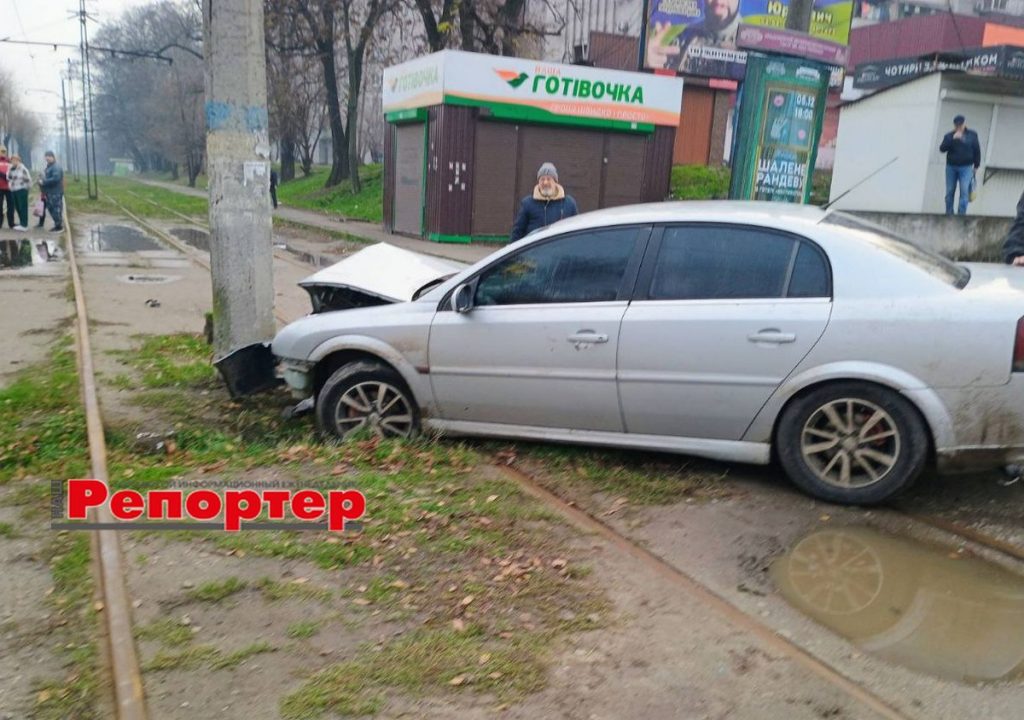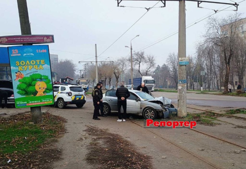 Серьезное ДТП в Каменском: водитель легковушки врезался в электроопору (фотофакт)