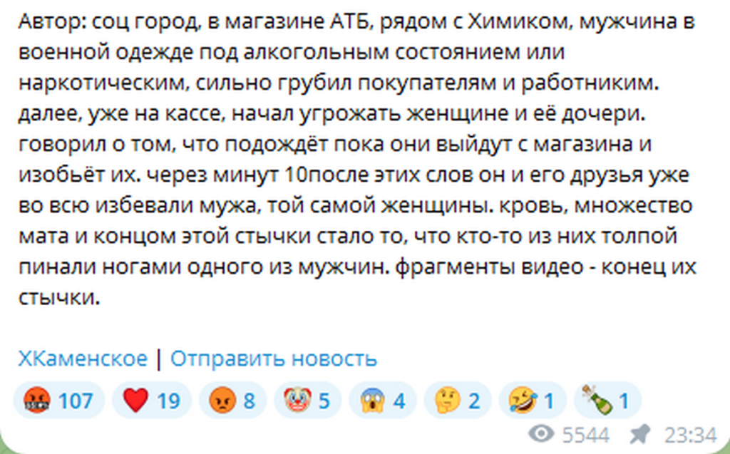 Ссылка на видео инцидента (ВНИМАНИЕ! Слышны крики, весьма эмоциональные!): https://t.me/hkamenskoe/15256