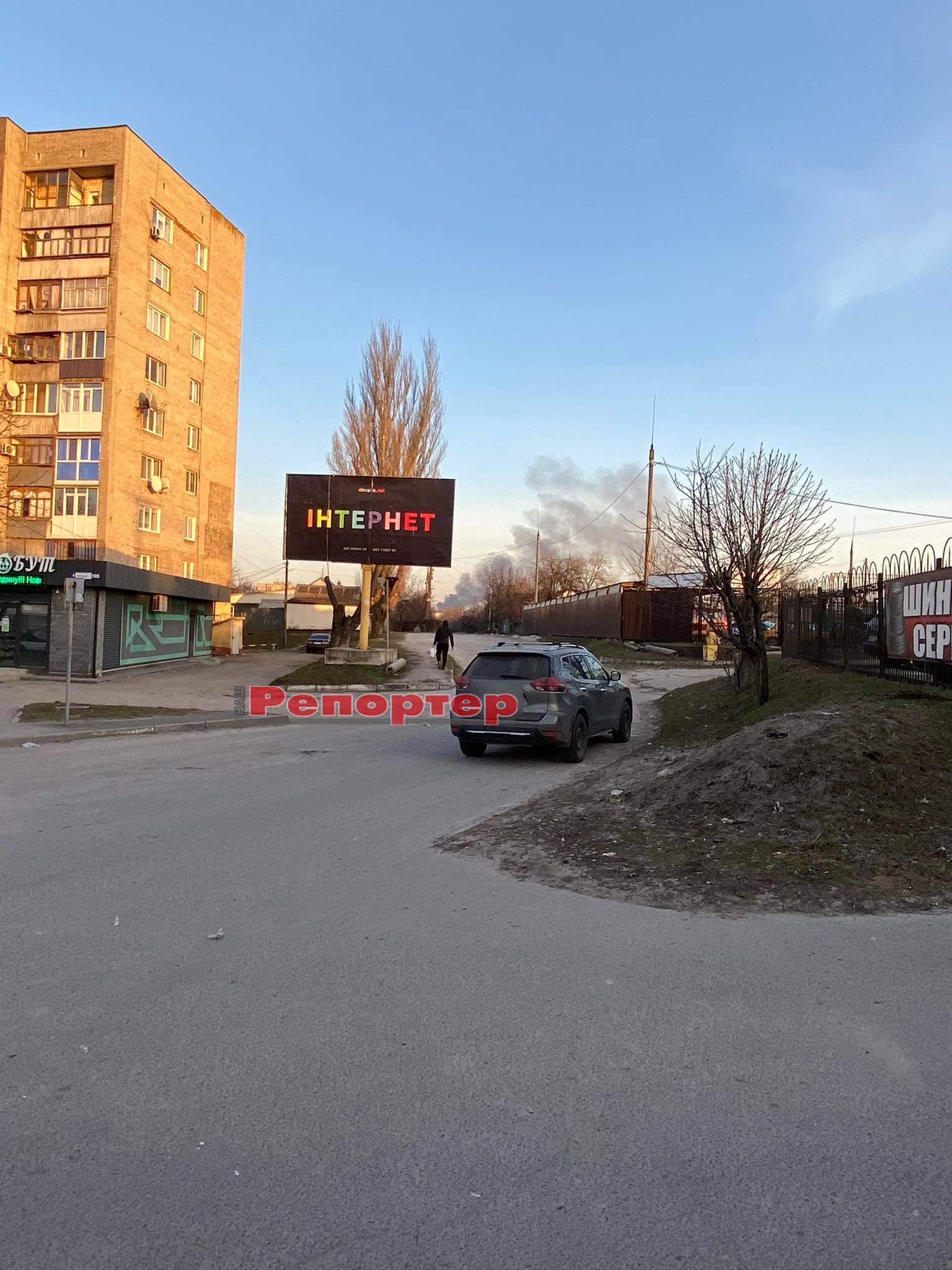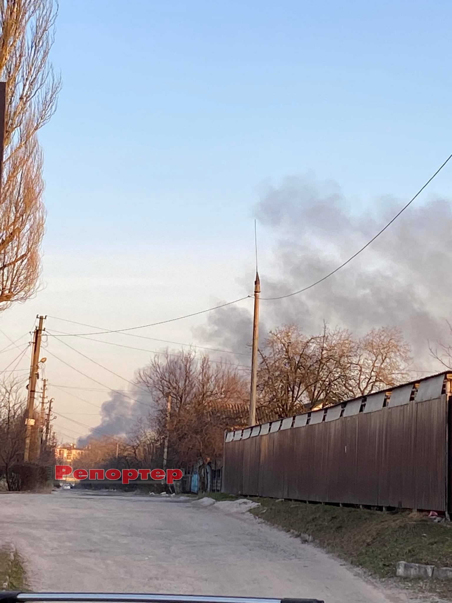 Фото сделано читателями 29 февраля на остановке общественного транспорта (автобусный маршрут №10) у железнодорожного вокзала. На фотографии видно, как со стороны Соцгорода поднимается в небо густой черный дым.