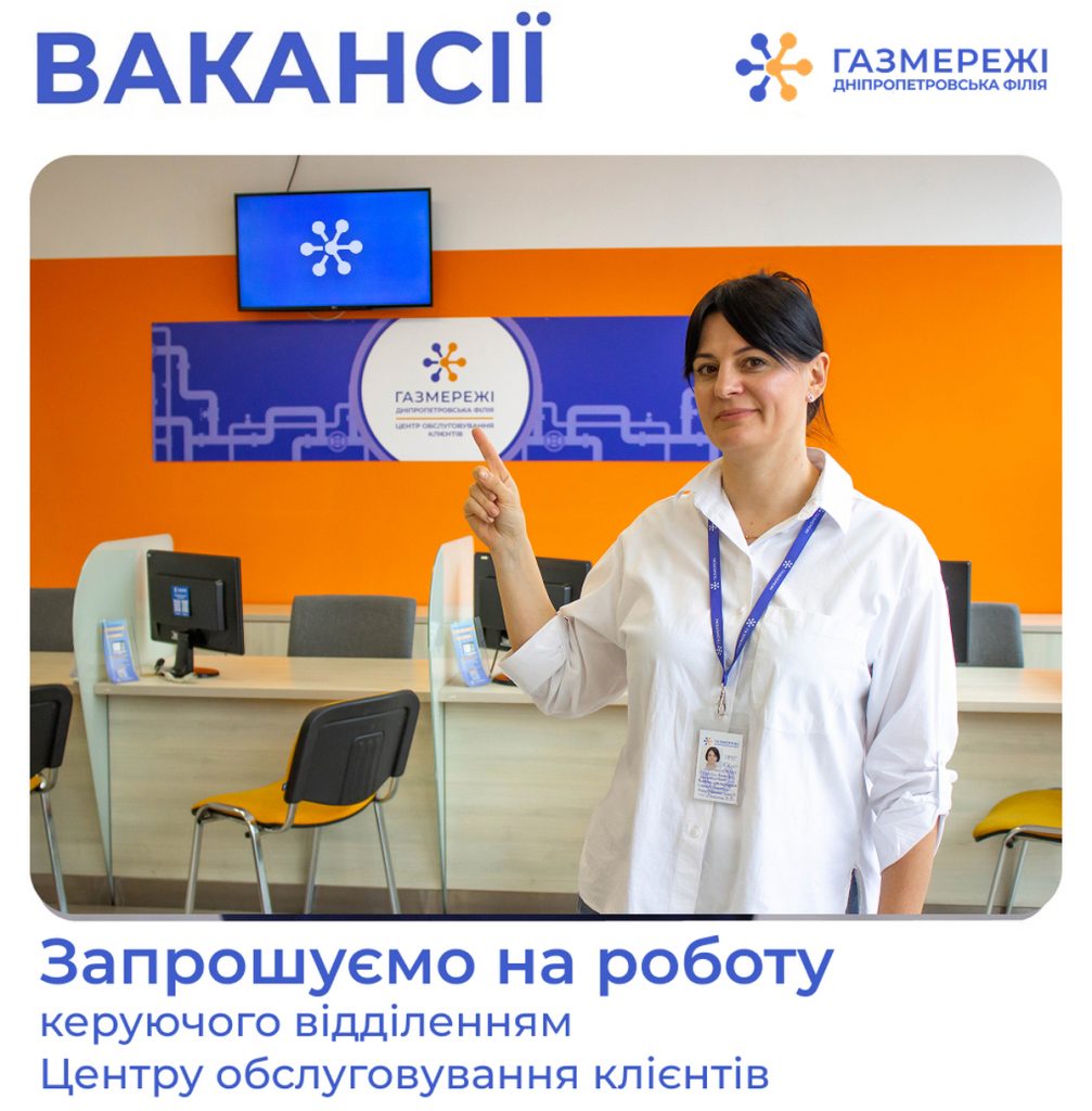 Дніпропетровська філія «Газмережі» шукає кандидата на посаду керуючого відділенням Центру обслуговування клієнтів у м. Кам’янське.