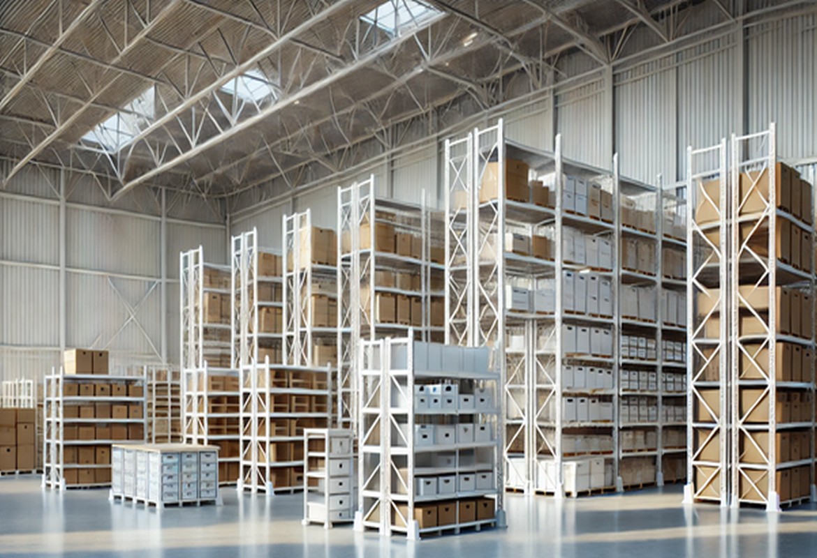- Стеллажи полочные: предназначены для хранения различных товаров на полках в складских помещениях.