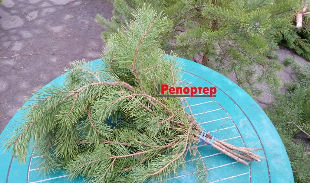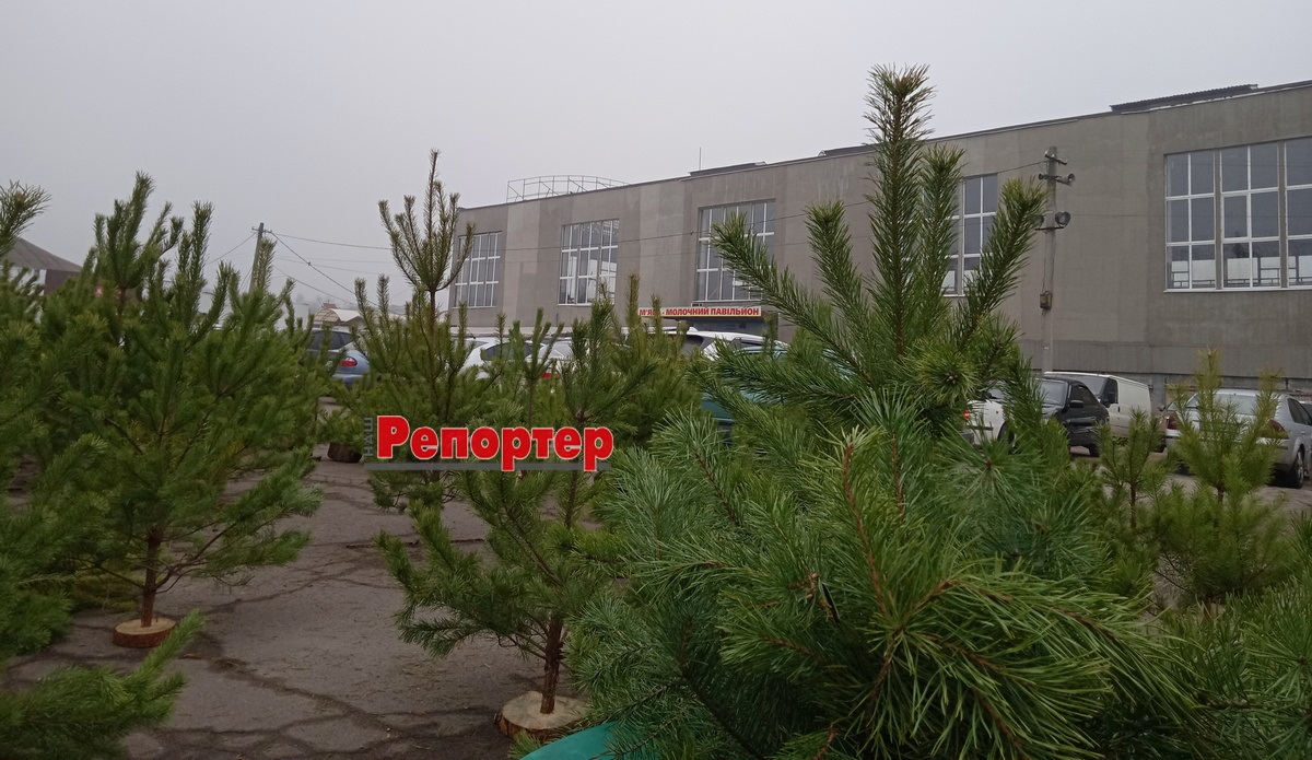 Возле мясного павильона большой выбор. Деревце здесь стоит от 300 грн. Только здесь я увидела в продаже небольшие пучки веток. За них просят 50 грн.