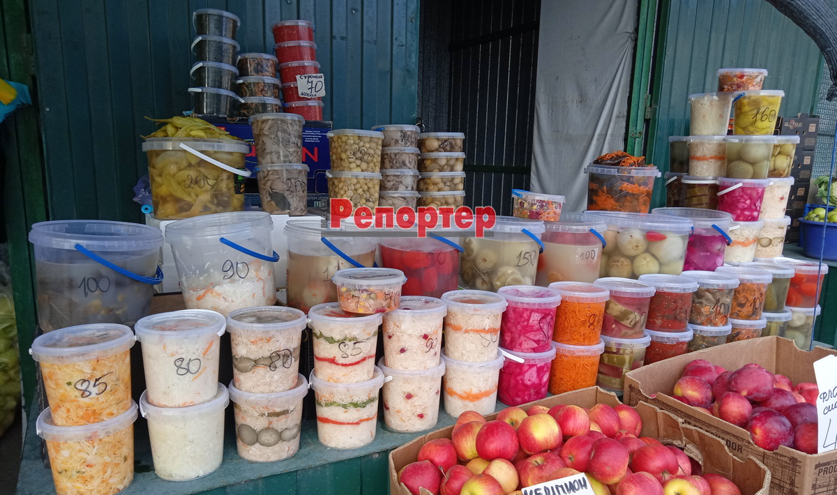 На рынке есть большой выбор солений. Особенно хвалят продукцию из села Баловка. Цени – от 70-80 грн за “ведерко” квашеной капусты.
