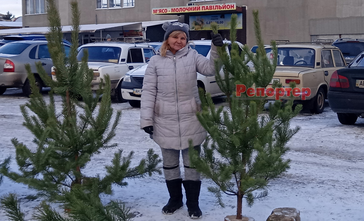 Возле мясного павильона большой выбор. Деревце здесь стоит от 300 грн.