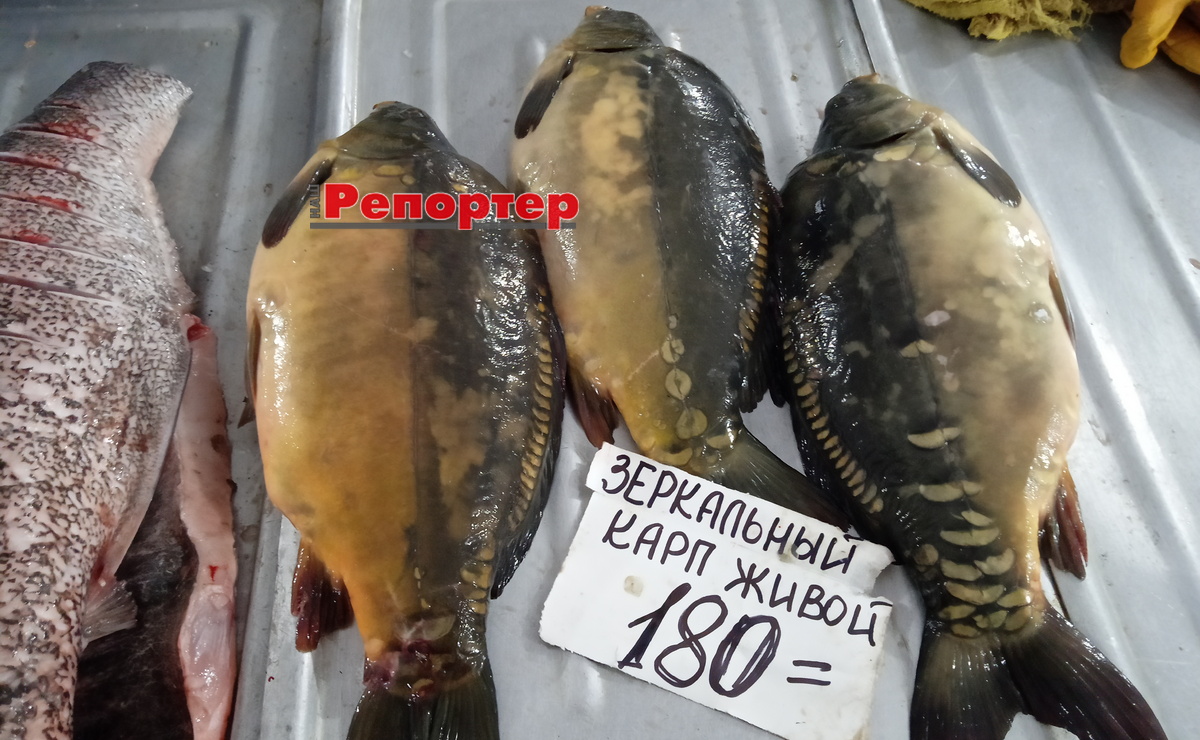 карп зеркальный – 180 грн/кг (цена не изменилась);