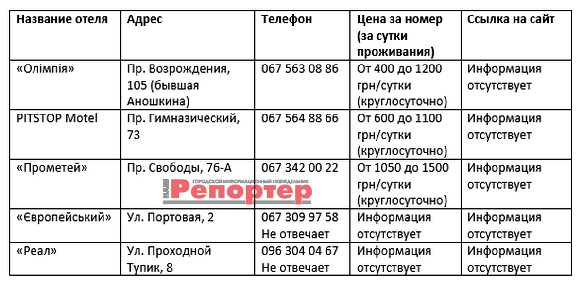 Отели Каменского: адреса, контакты, цены (по состоянию на декабрь 2025 г.)