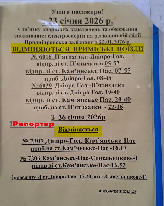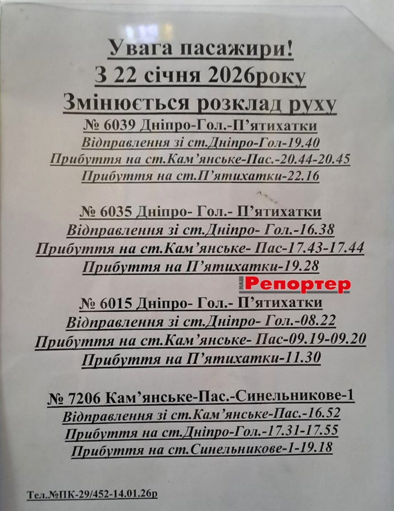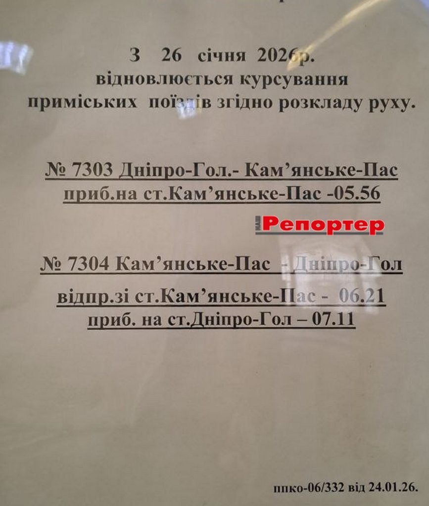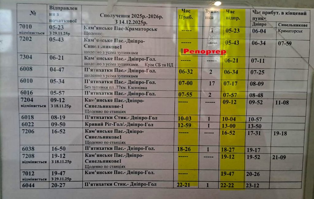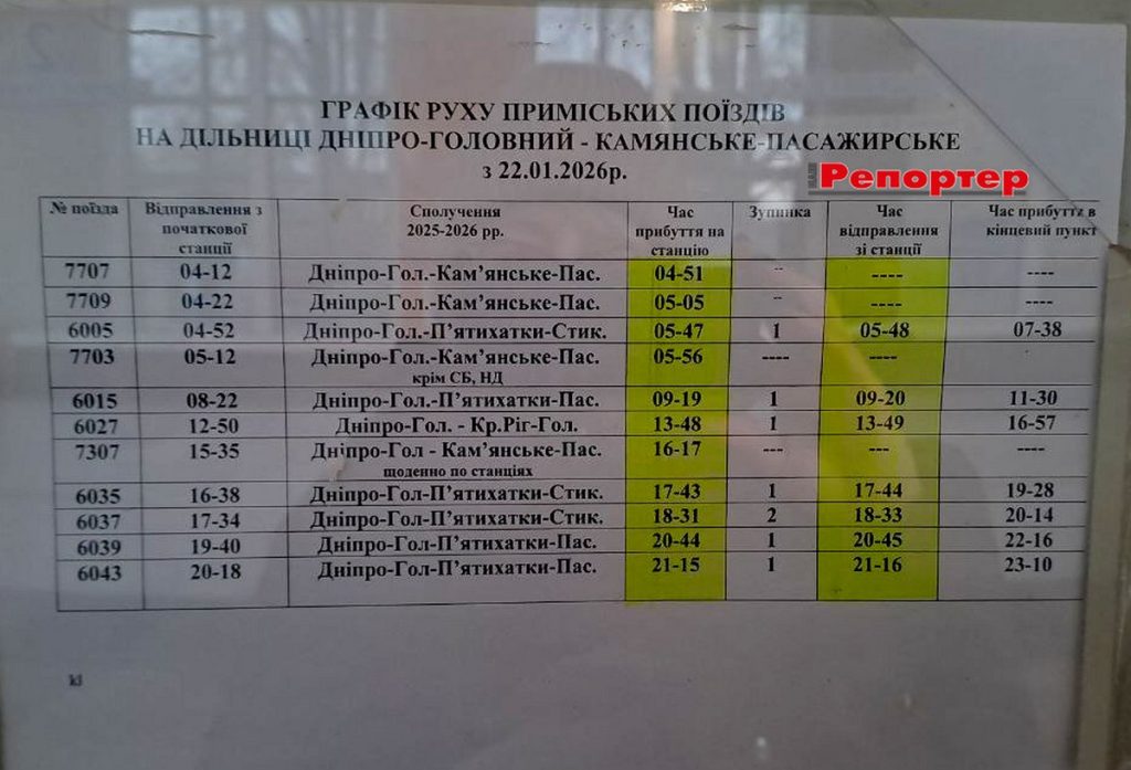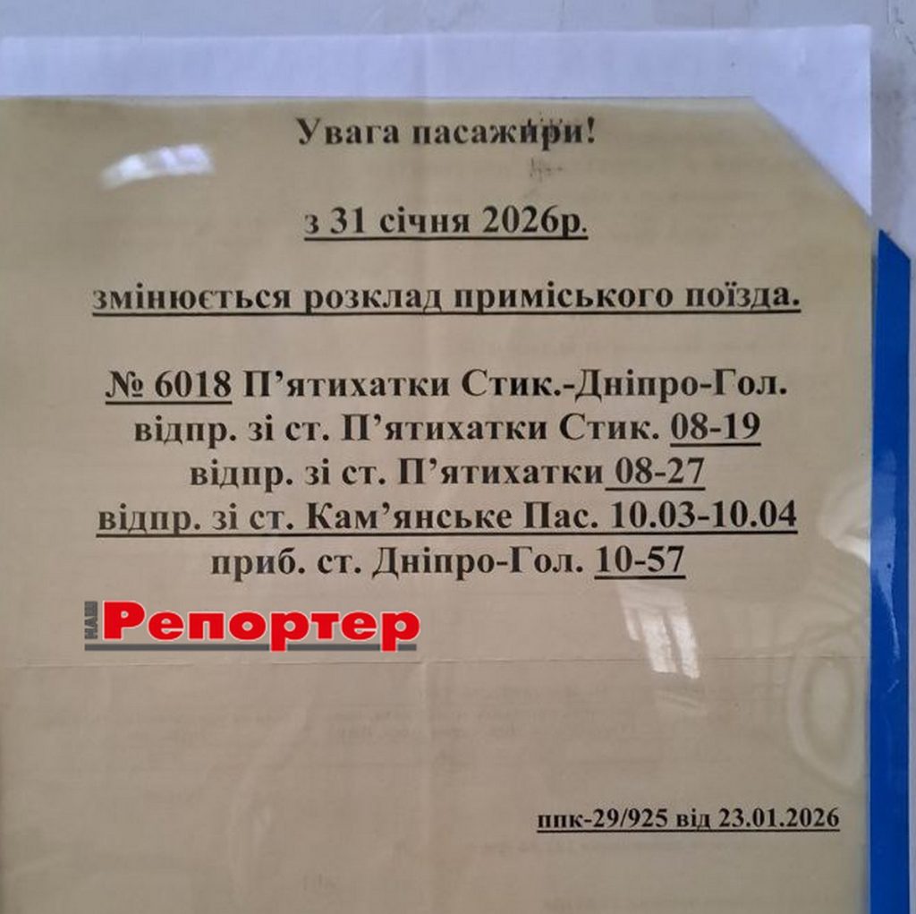 Пассажирам Каменского: изменения в расписании электричек (информация на 5 февраля)