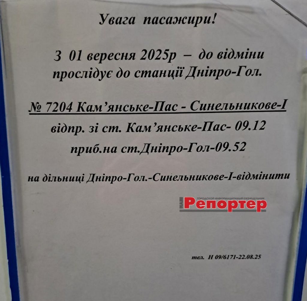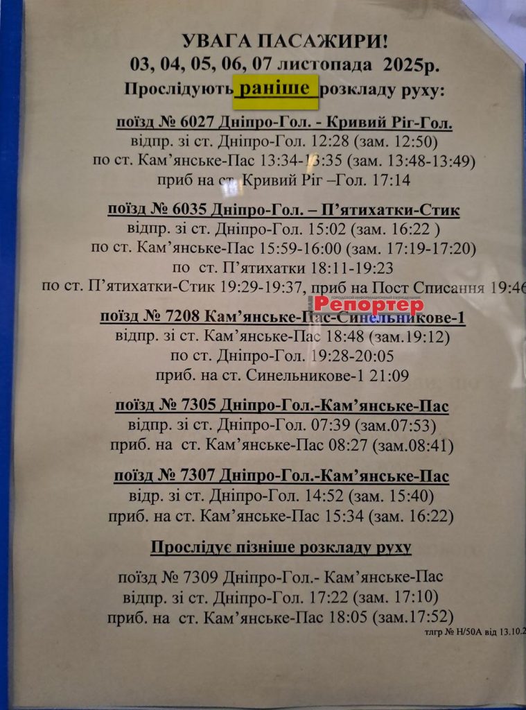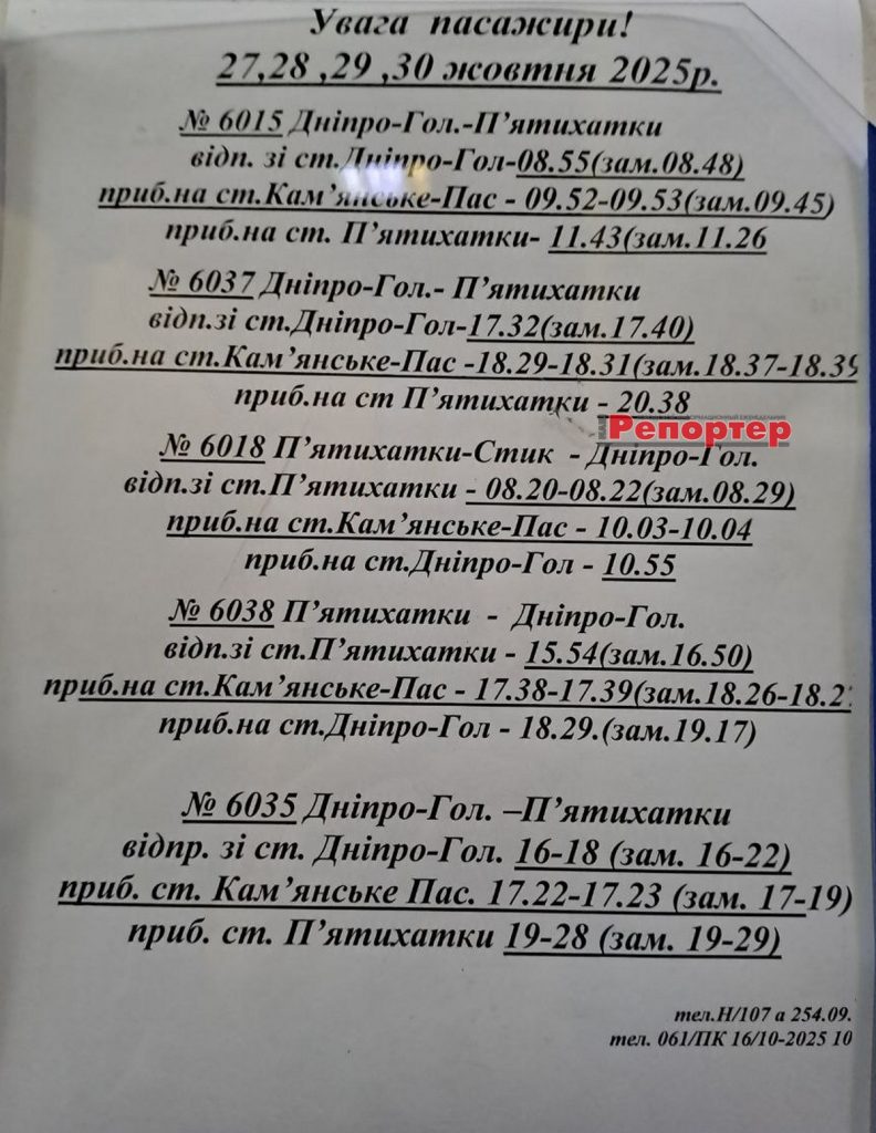 Пассажирам Каменского: изменения в расписании электричек (конец октября – начало ноября)