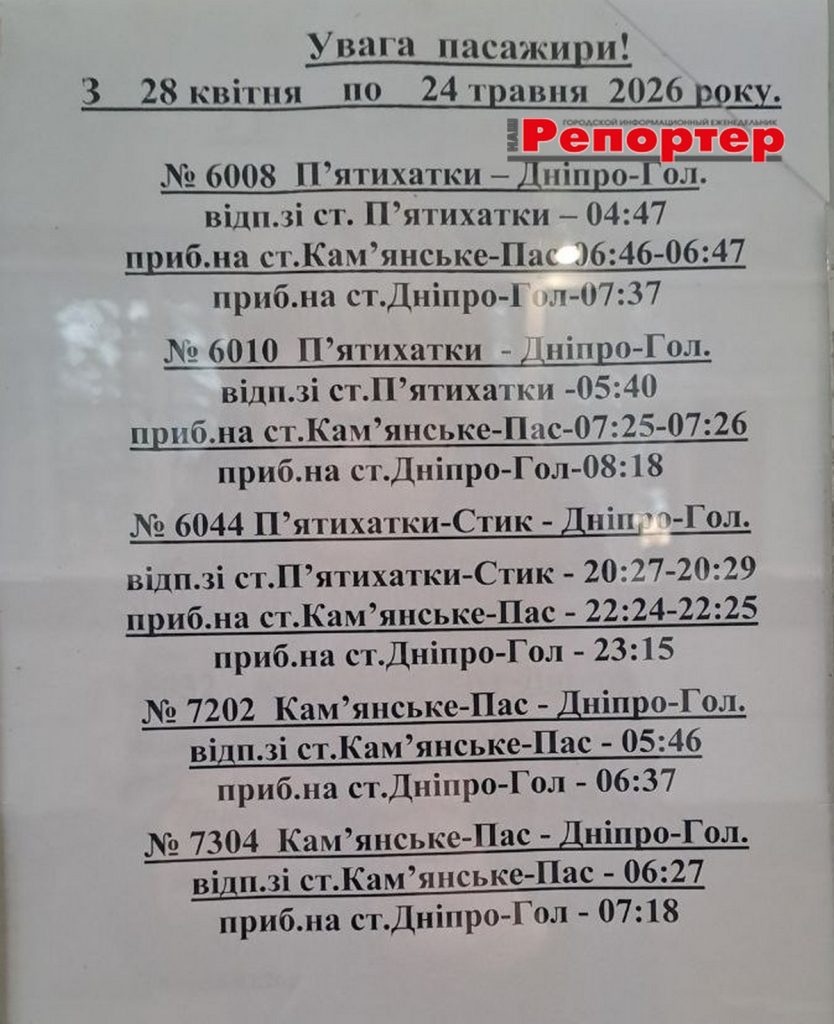 Пассажирам Каменского: изменения в расписании электричек на новую неделю (информация на 19.04.2026)
