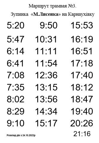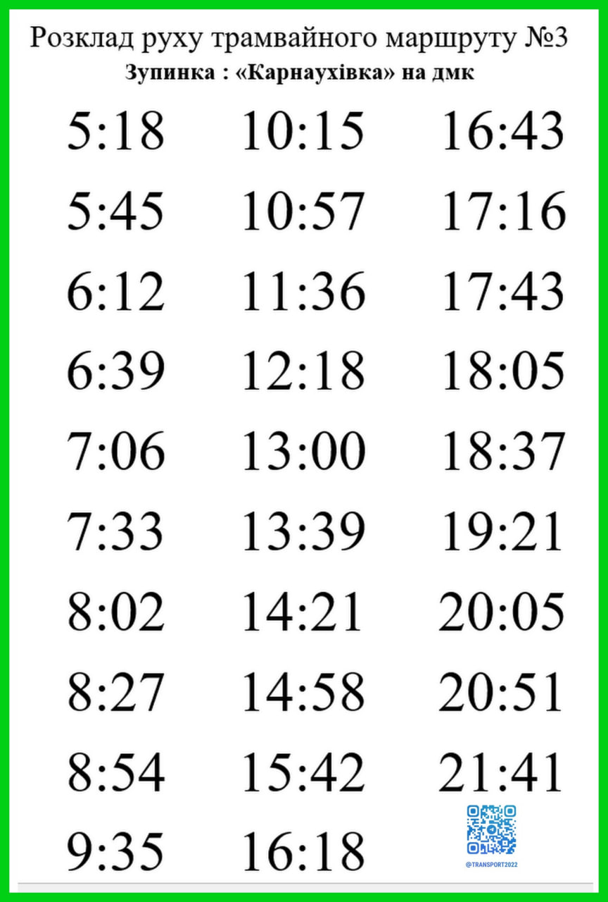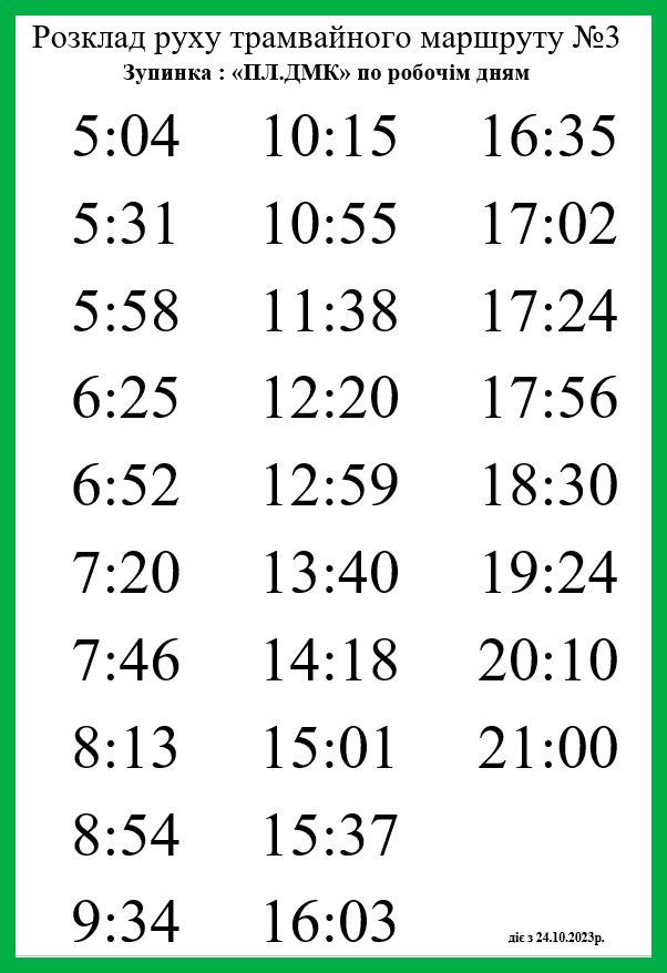 Пассажирам Каменского: расписание движения трамваев по маршруту № 3