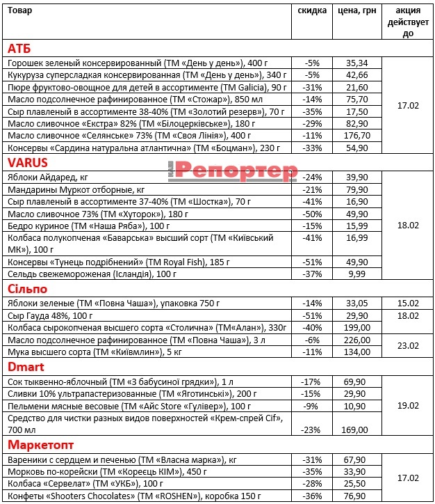 Скидки в супермаркетах Каменского: где сэкономить (с 13 по 23 февраля)
