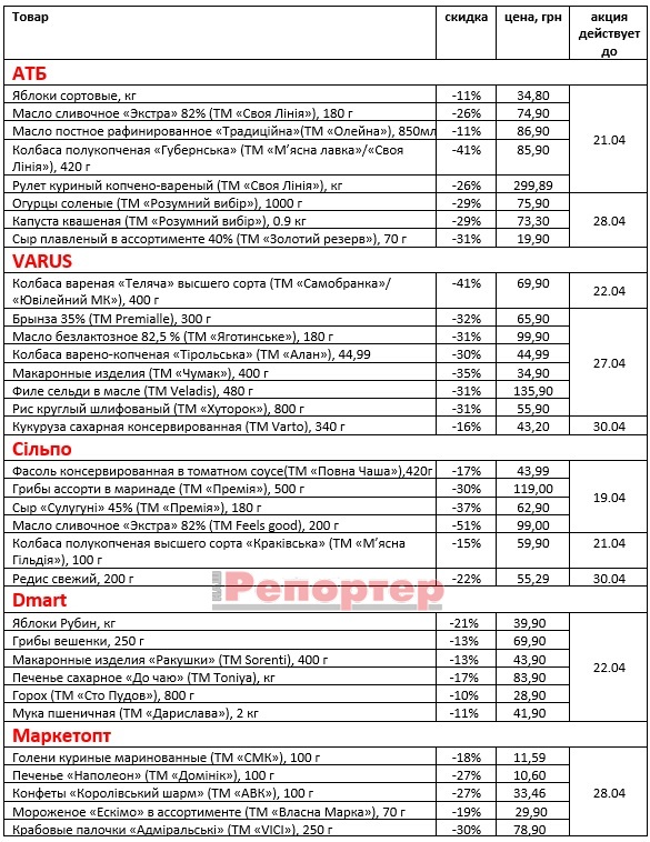 Скидки в супермаркетах Каменского: где сэкономить (с 16 по 24 апреля)