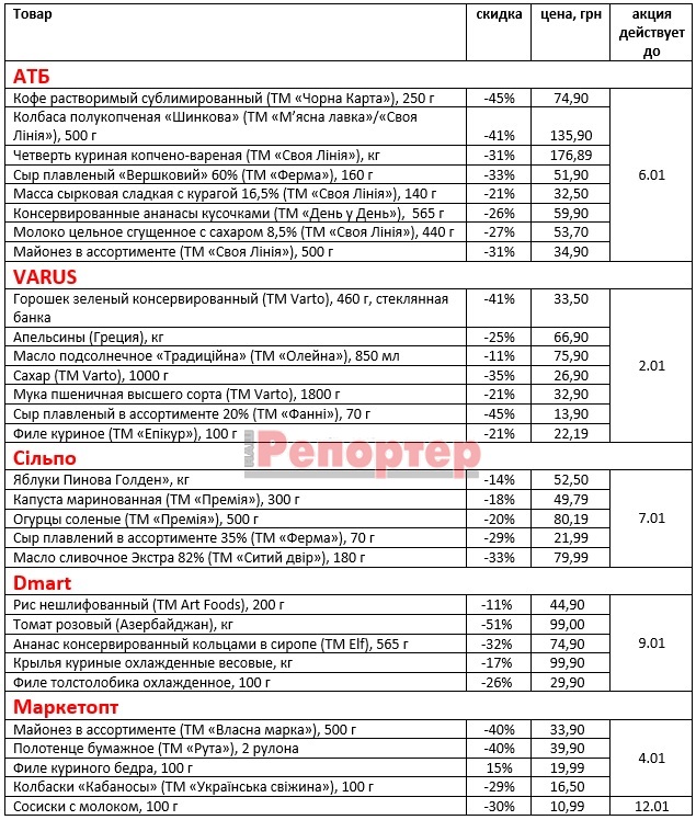 Скидки в супермаркетах Каменского: где сэкономить (со 2 по 12 января)