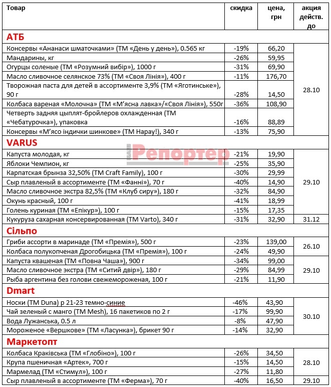 Скидки в супермаркетах Каменского: где сэкономить (с 24 по 31 октября)