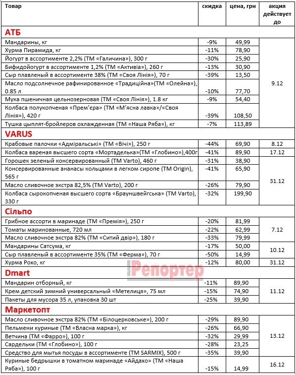 Скидки в супермаркетах Каменского: где сэкономить (с 5 по 12 декабря)