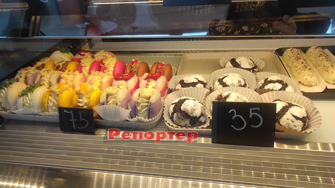 Посетителей приглашают выпить вкусный кофе и насладиться нежными десертами собственного производства, а также отведать сезонные напитки. На кондитерской витрине аппетитно выглядят пирожные, макаронс, печенье, тортики и другие лакомства.