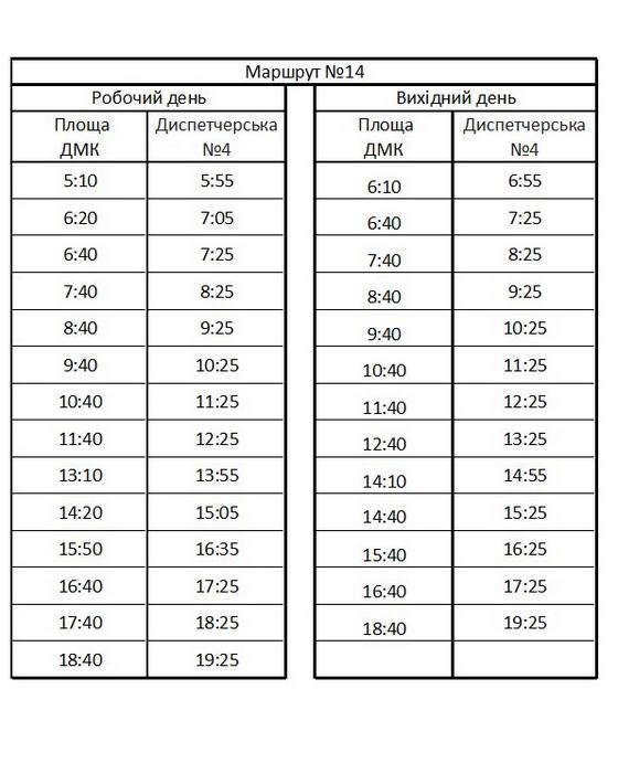 Расписание движения автобусов в рабочие и выходные дни, где указано время отправки рейсов с начальных остановок, приводим ниже.