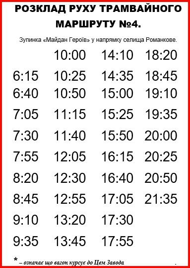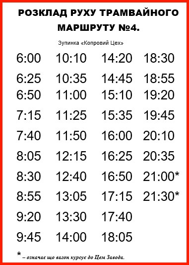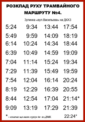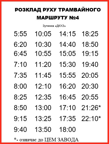 Вниманию пассажиров Каменского: актуальное расписание движения трамваев по маршруту № 4