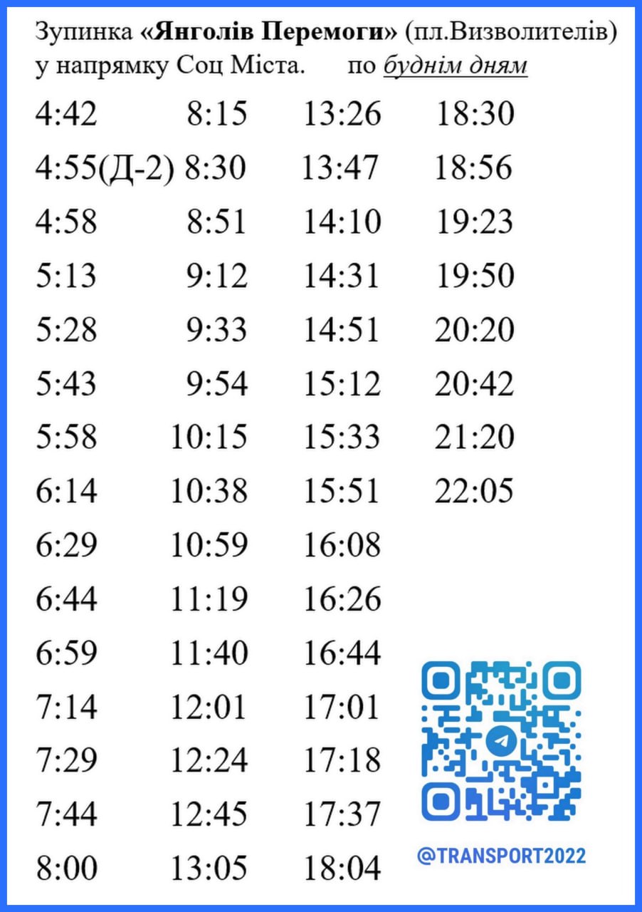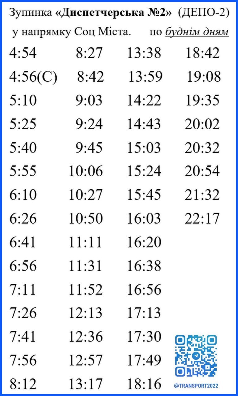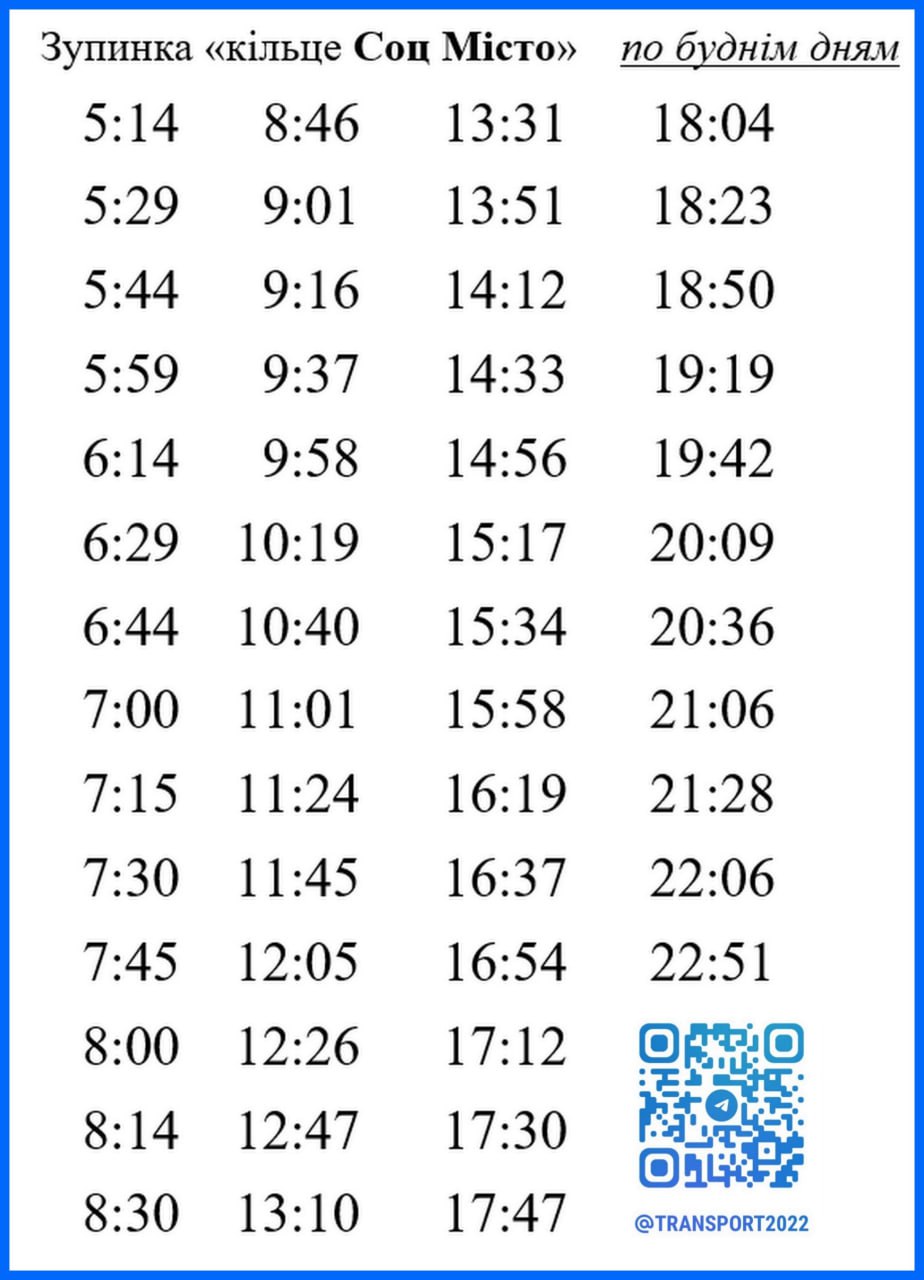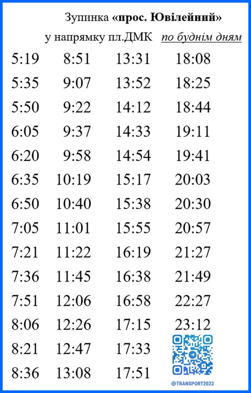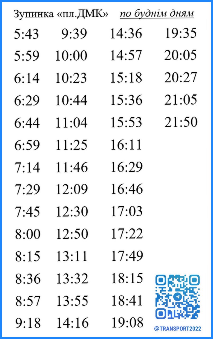 Информация подготовлена КП “Транспорт”. Расписание движения действует в рабочие дни.