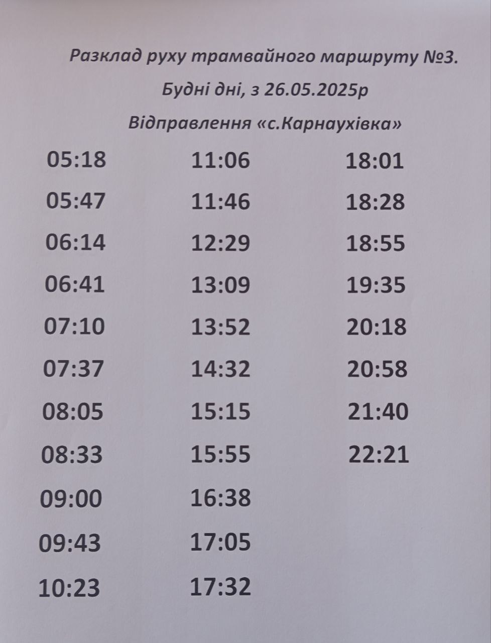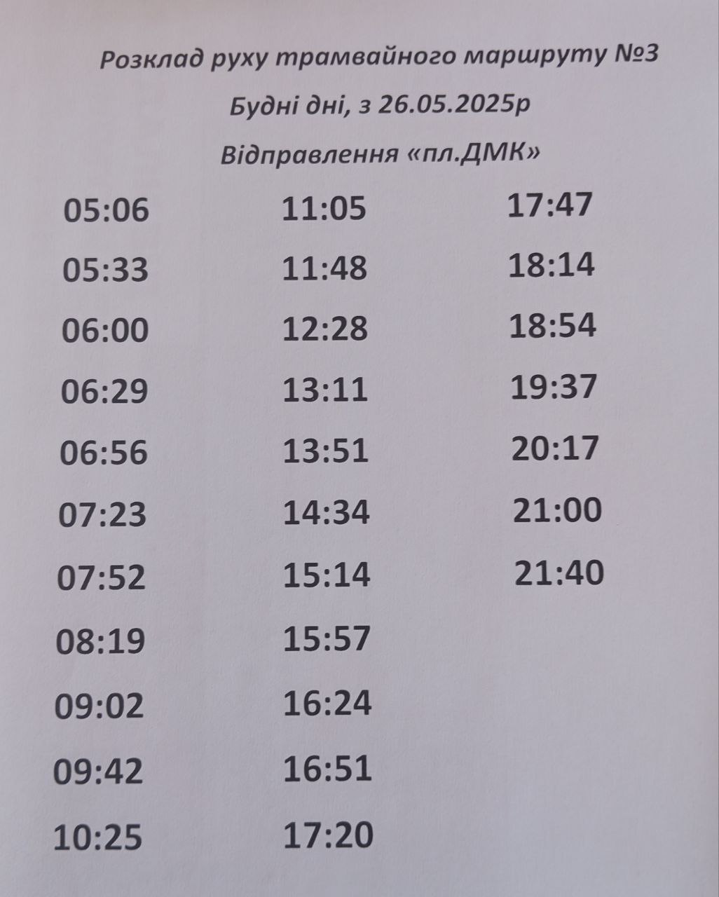 Вниманию жителей Каменского: действующее расписание движения трамваев маршрута № 3