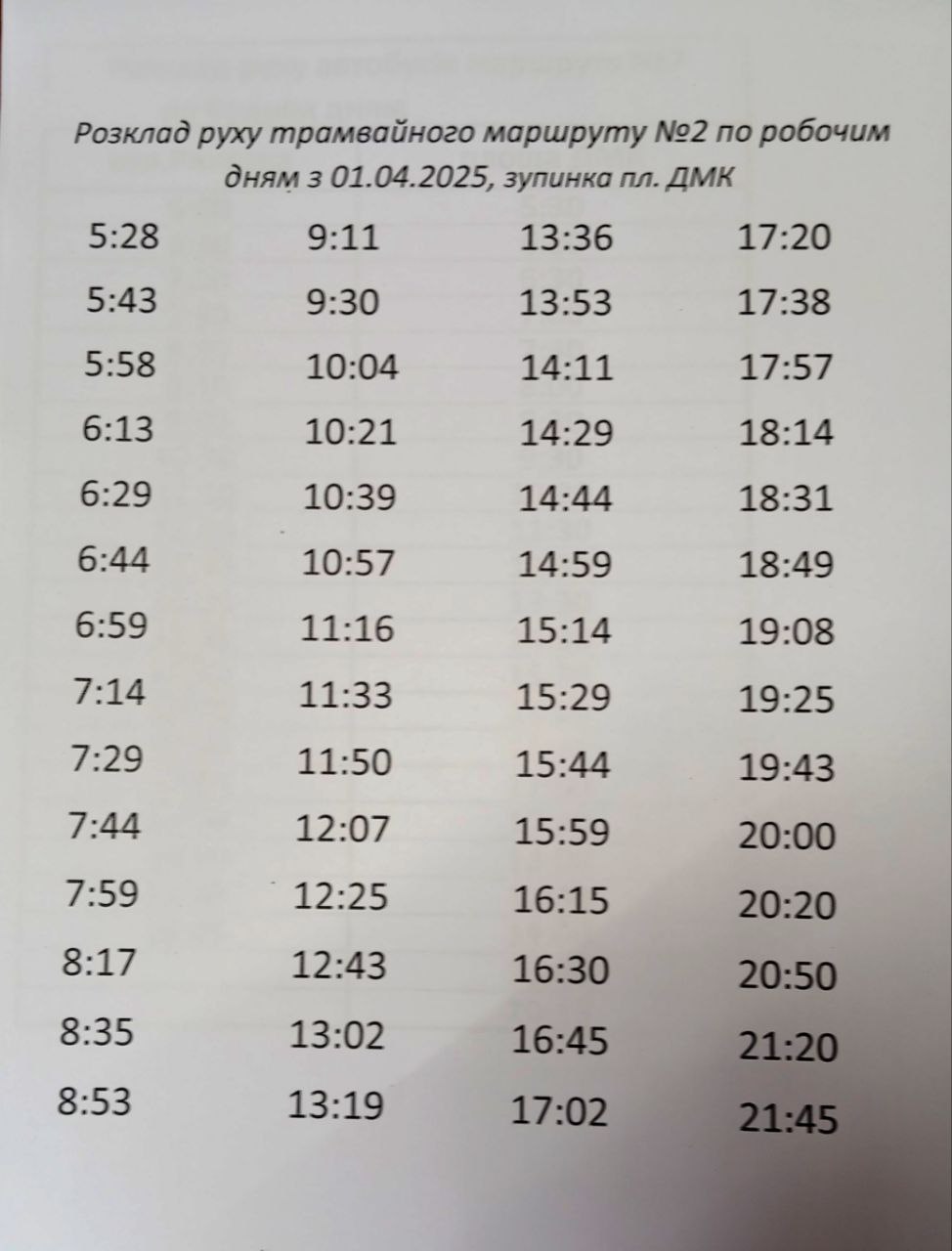 Вниманию жителей Каменского: действующее расписание движения трамваев маршрута № 2