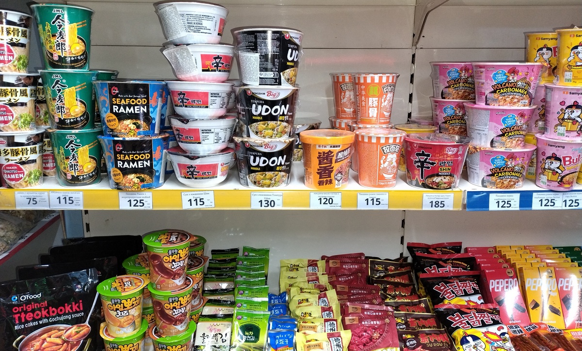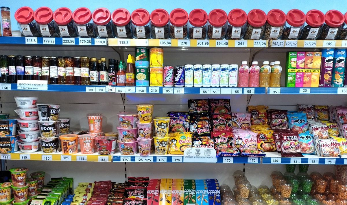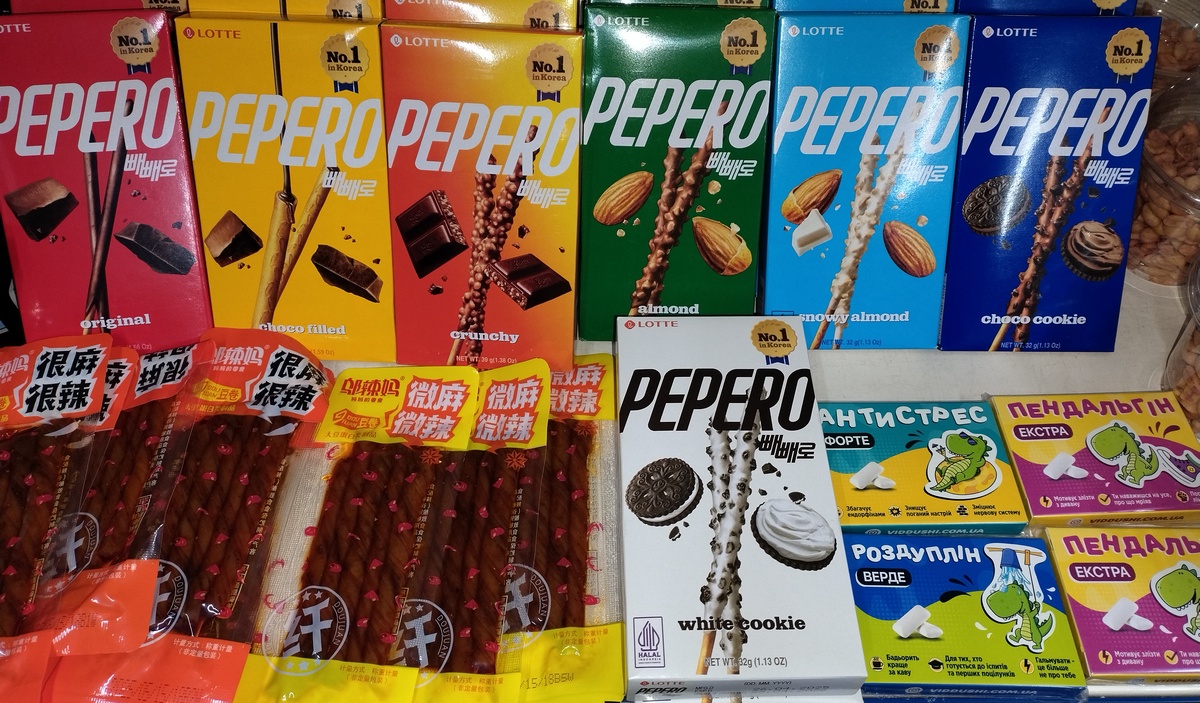 Ассортимент магазина постоянно обновляется и расширяется. Среди последних новинок много товаров из Азии: корейские снеки с морскими водорослями, морской виноград, латяо – соевое мясо, тофу в соусе, популярные напитки «Milkis», «Welchs», даже консервированный бамбук и джекфрут в сиропе, корейский чай в стиках – имбирный и ореховый. Для любителей острых ощущений – соус «Buldak» (мегаострый).