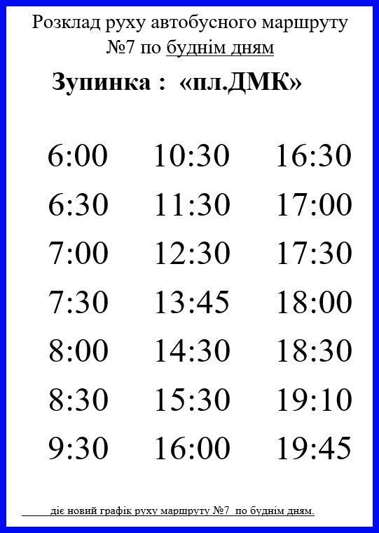 Информация предоставлена КП “Транспорт”. С 19 февраля действует новое расписание для автобусного маршрута №7 (с понедельника по пятницу).