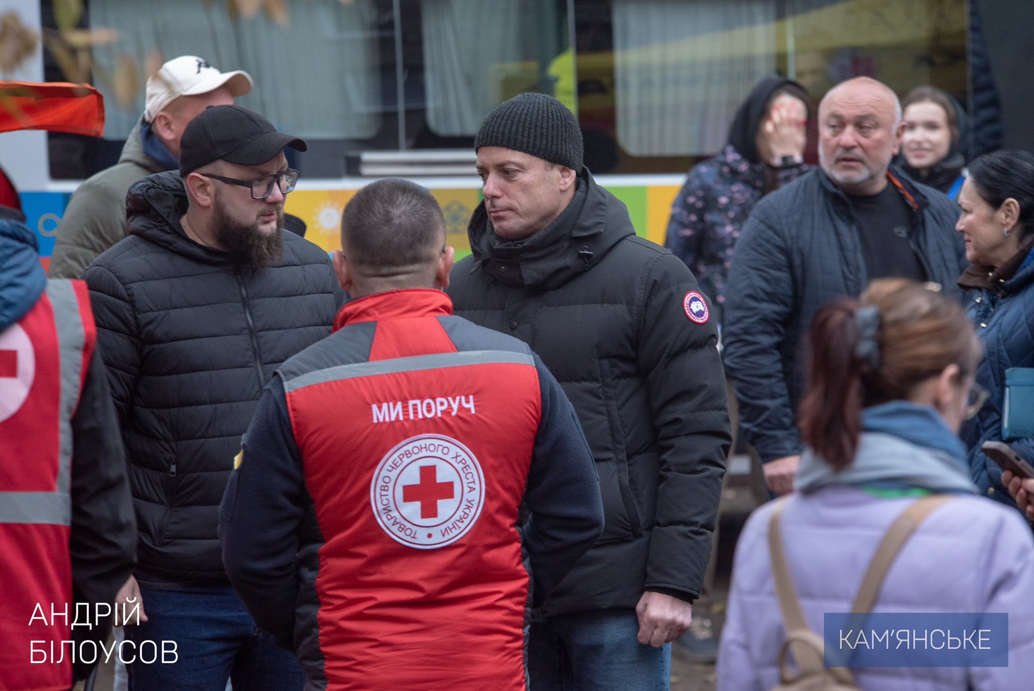 С первых минут после вражеской атаки работают спасатели, полицейские, медики, коммунальные службы и волонтеры. Городской голова Андрей Белоусов и начальник Каменской районной военной администрации Олег Гапич немедленно прибыли на место происшествия. Мэр лично координирует и контролирует все работы служб городского совета, задействованных в ликвидации последствий удара.