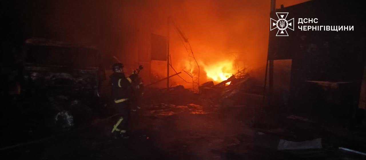 На Черниговщине российские оккупанты нанесли серию ударов БпЛА по лесозаготовительному предприятию в приграничном городе Новгород-Северский. Возник пожар в служебных зданиях, повреждены и уничтожены грузовики и другая производственная техника.