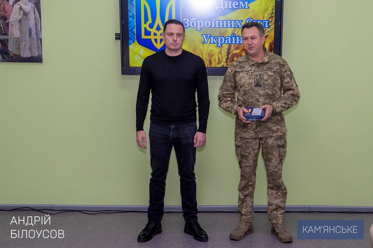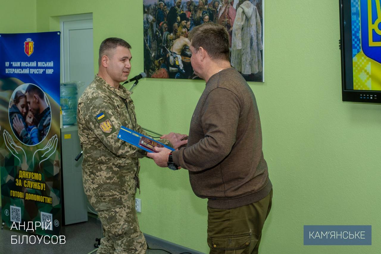 Напередодні свята в Кам’янському ветеранському просторі відбувся урочистий захід, під час якого міський голова Андрій Білоусов від імені всієї громади привітав військовослужбовців, ветеранів та вручив захисникам почесні відзнаки.