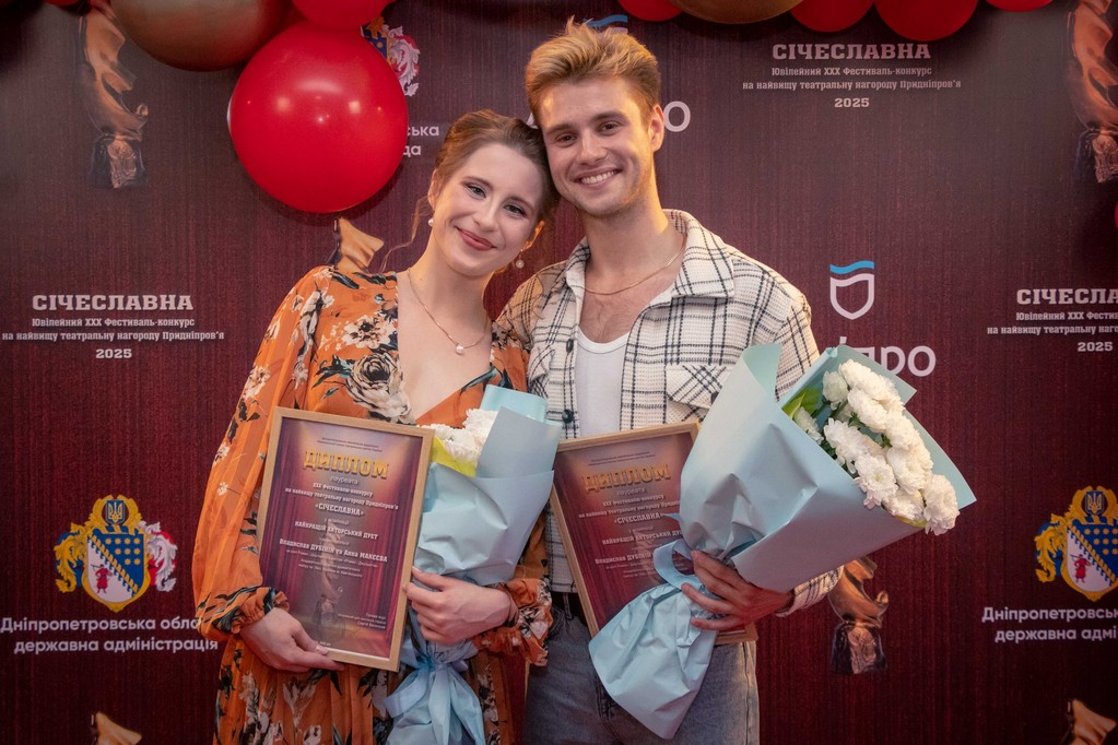 Цьогорічна “Січеславна” яскраво висвітила таланти колективу нашого театру. Зокрема, у номінації “Найкращий акторський дует” заслужену перемогу здобули Анна Макєєва та Владислав Дубінін. Їхнє глибоке втілення образів Джульєтти та Ромео у виставі “Ромео і Джульєтта” підкорило серця журі та глядачів.