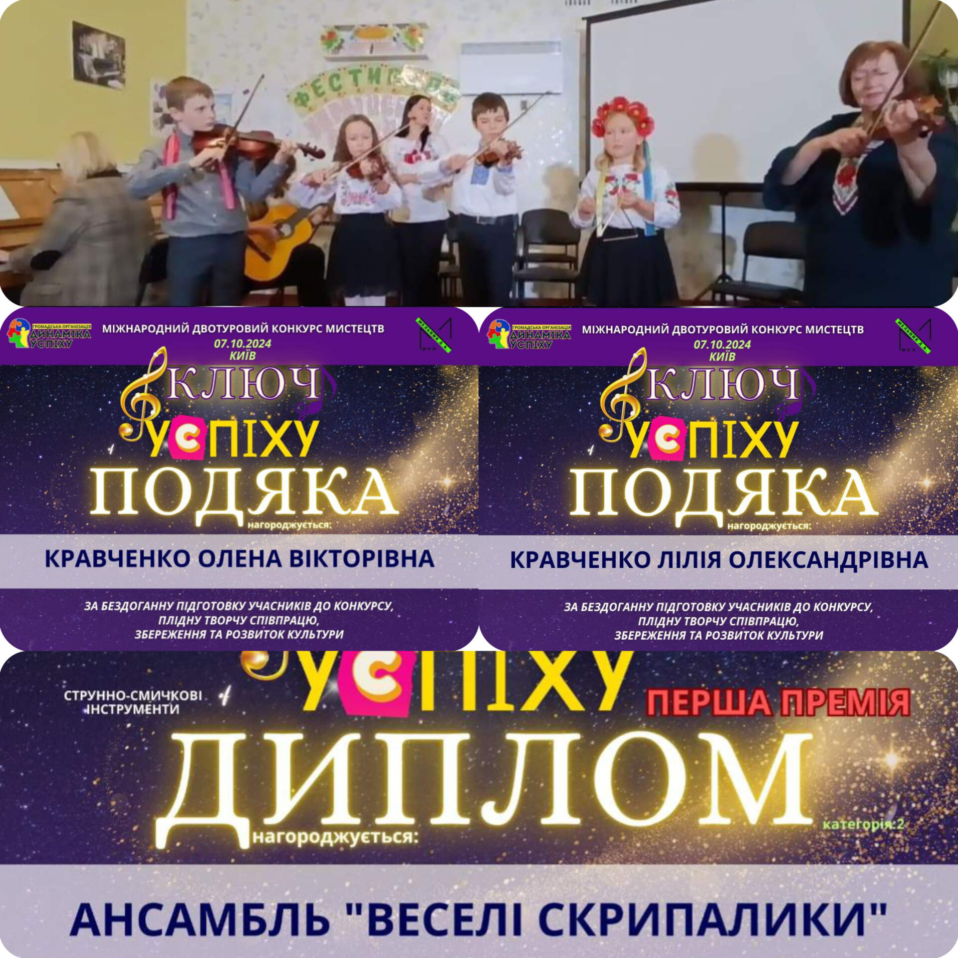 Юні музиканти взяли участь у дистанційному Міжнародному двотуровому конкурсі мистецтв “Ключ до успіху“, який проводився з 20 вересня по 7 жовтня. Його організували ГО “Динаміка успіху” і Центр культурних та освітніх програм.